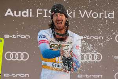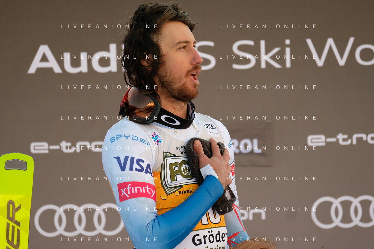 TommasiniR/LMedia - 2021 FIS Ski World Cup - Men's Downhill - alpine ski race 18 December 2021 - Saslong, Val Gardena, Italy Photo showing: Bryce Bennet (USA) the winner of Saslong downhill in Val Gardena @TommasiniR/LMedia/AGENZIA ALDO LIVERANI SAS