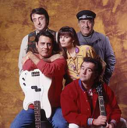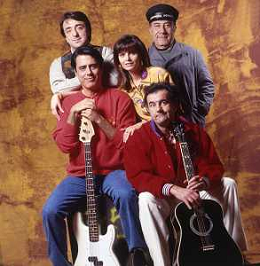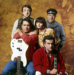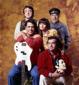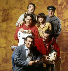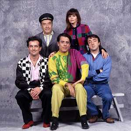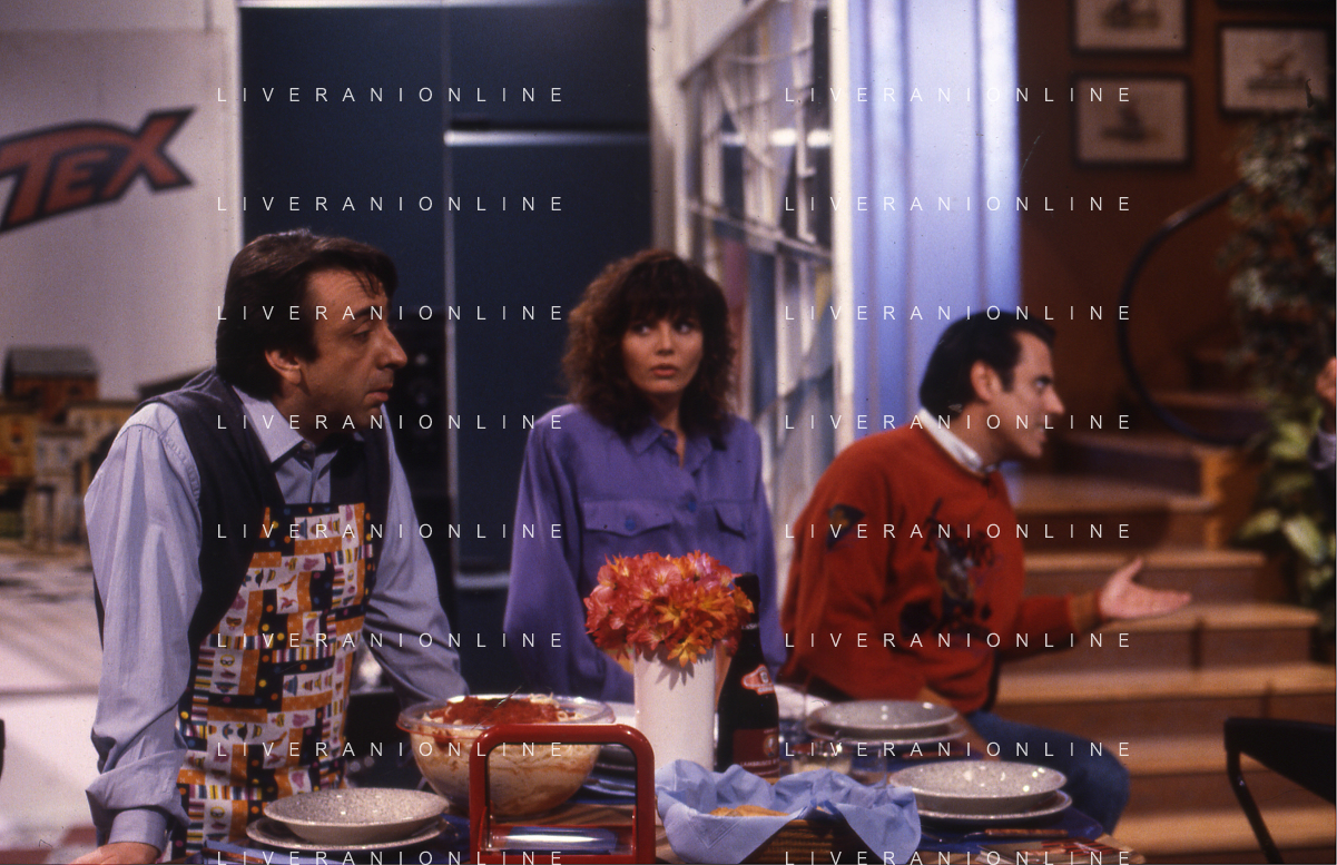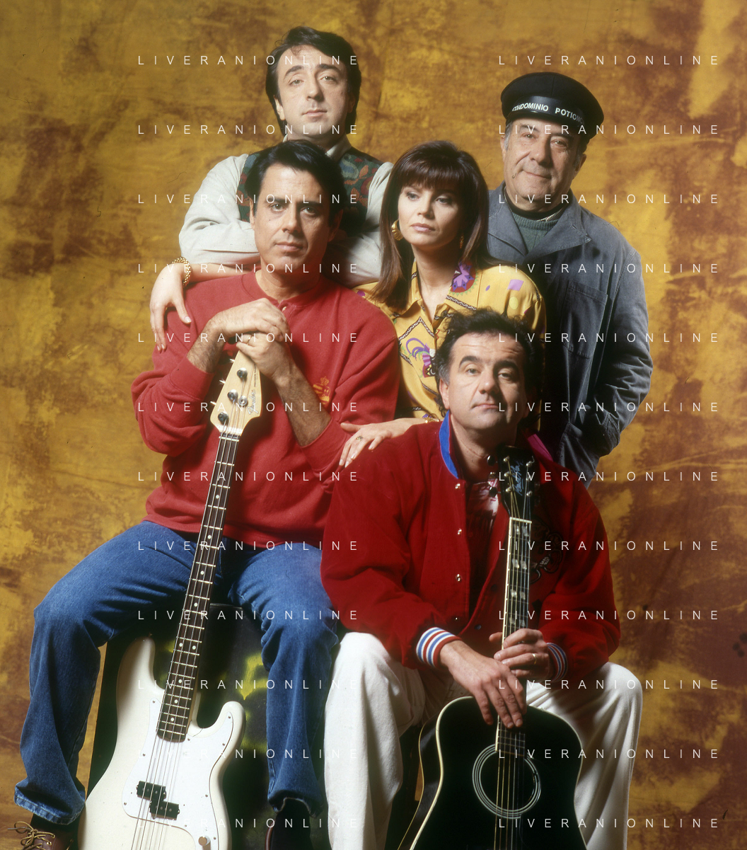 RETROSPETTIVA TEO TEOCOLI ATTORE NELLA FOTO TEO TEOCOLI NELLA SERIE TELEVISIVA“ VICINI DI CASA“ A MILANO NELL'ANNO 1991 CON ENZO CANNAVALE-GABRIELLA GOLIA-SILVIO ORLANDO GENE GNOCCHI AG ALDO LIVERANI SAS