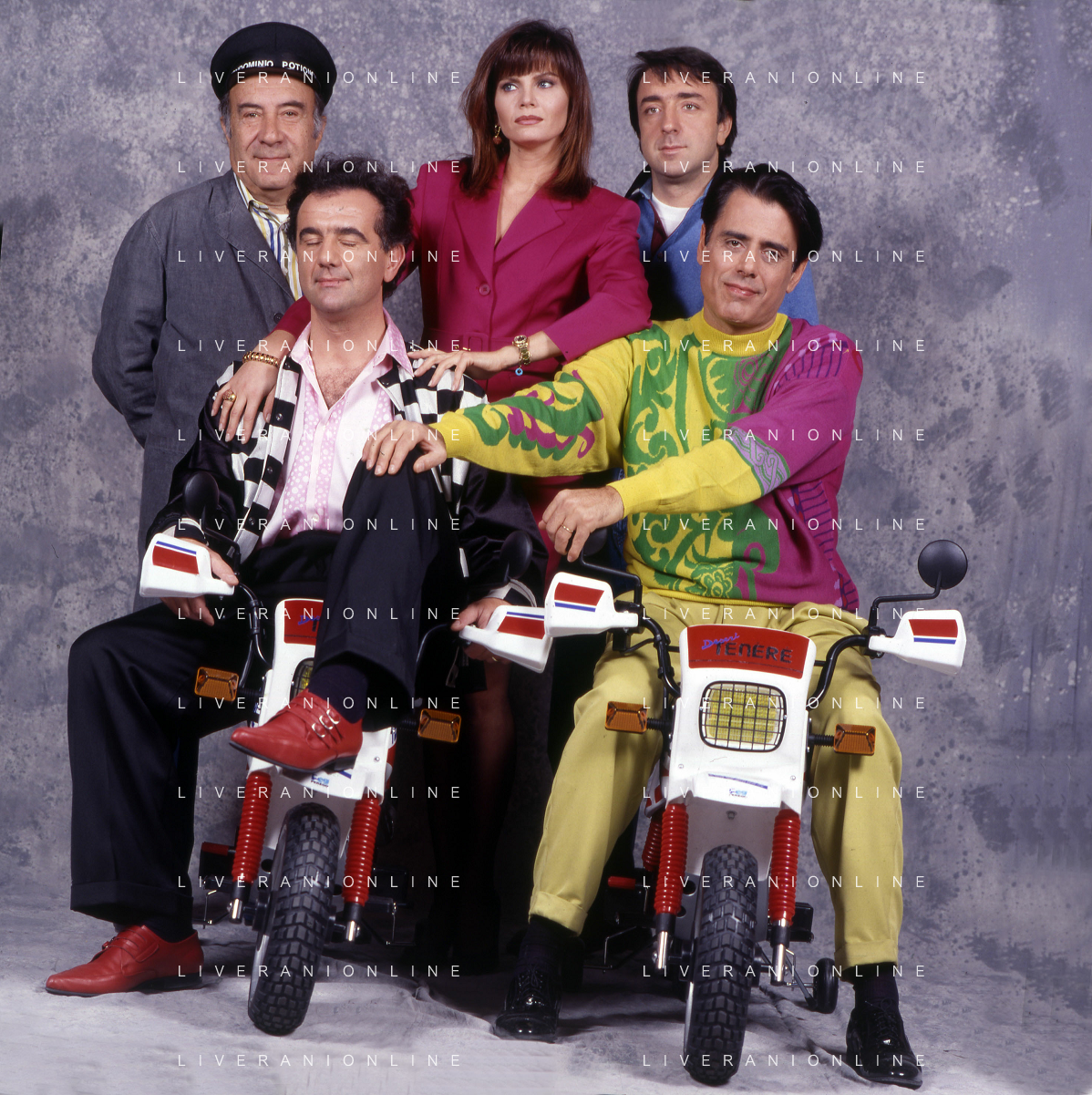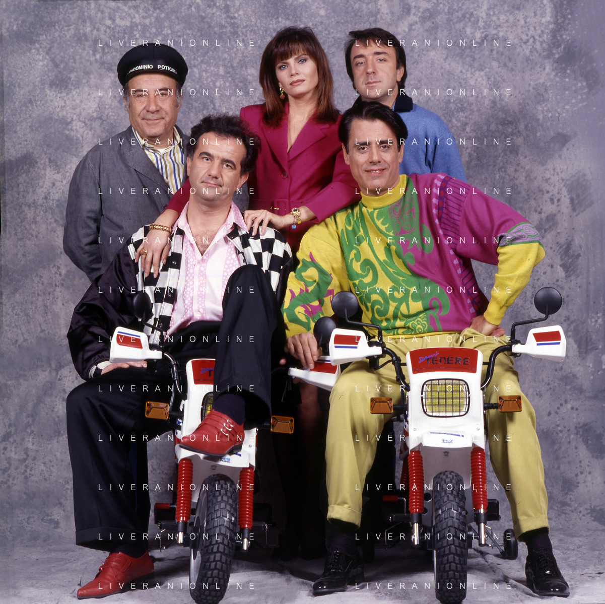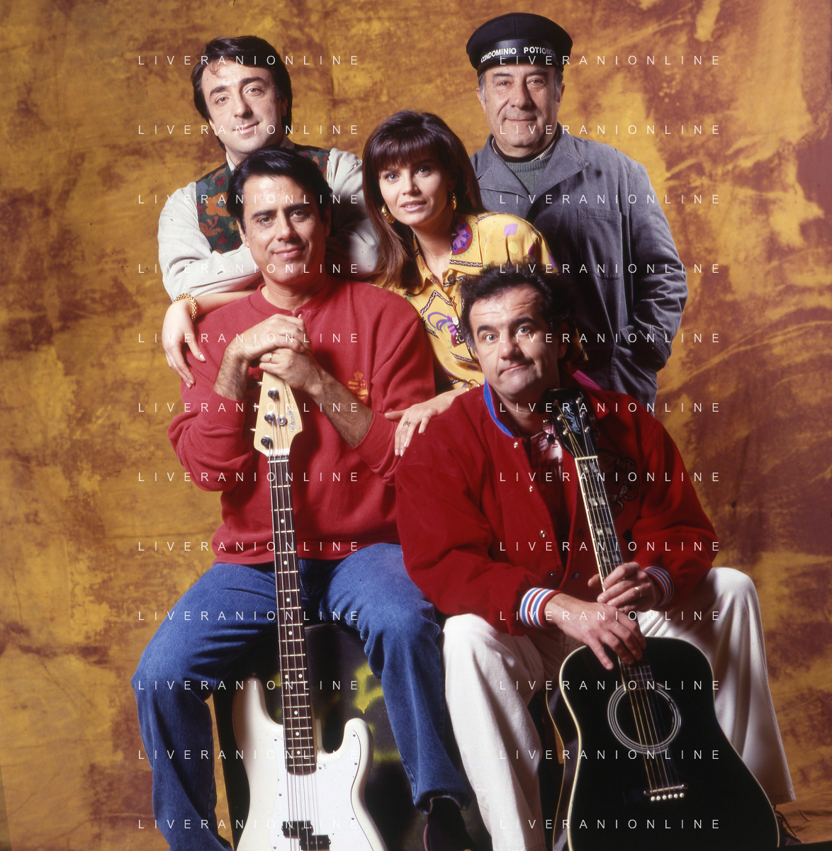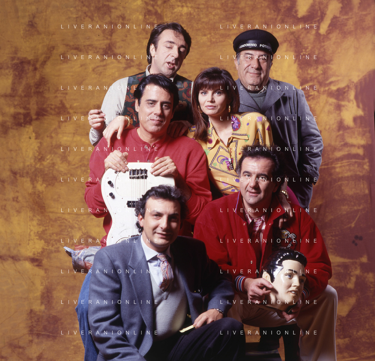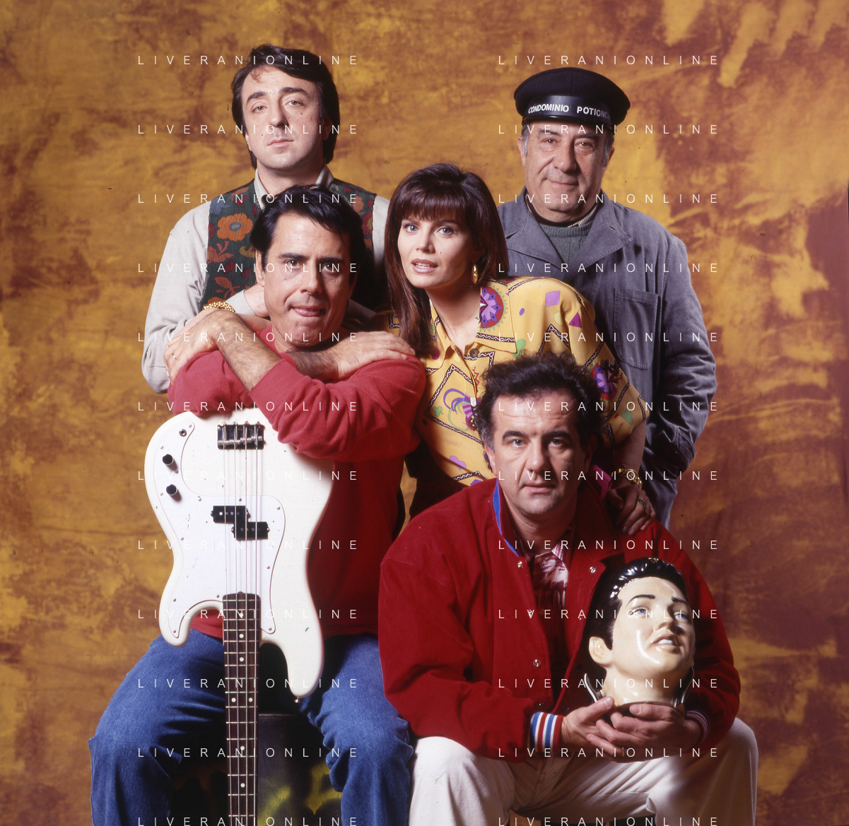 RETROSPETTIVA TEO TEOCOLI ATTORE NELLA FOTO TEO TEOCOLI NELLA SERIE TELEVISIVA“ VICINI DI CASA“ A MILANO NELL'ANNO 1991 CON ENZO CANNAVALE-GABRIELLA GOLIA-SILVIO ORLANDO E GENE GNOCCHI AG ALDO LIVERANI SAS