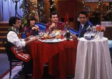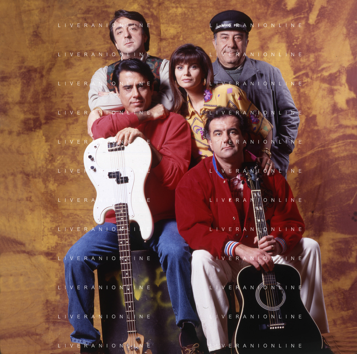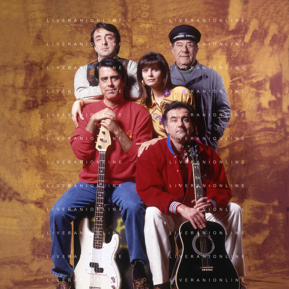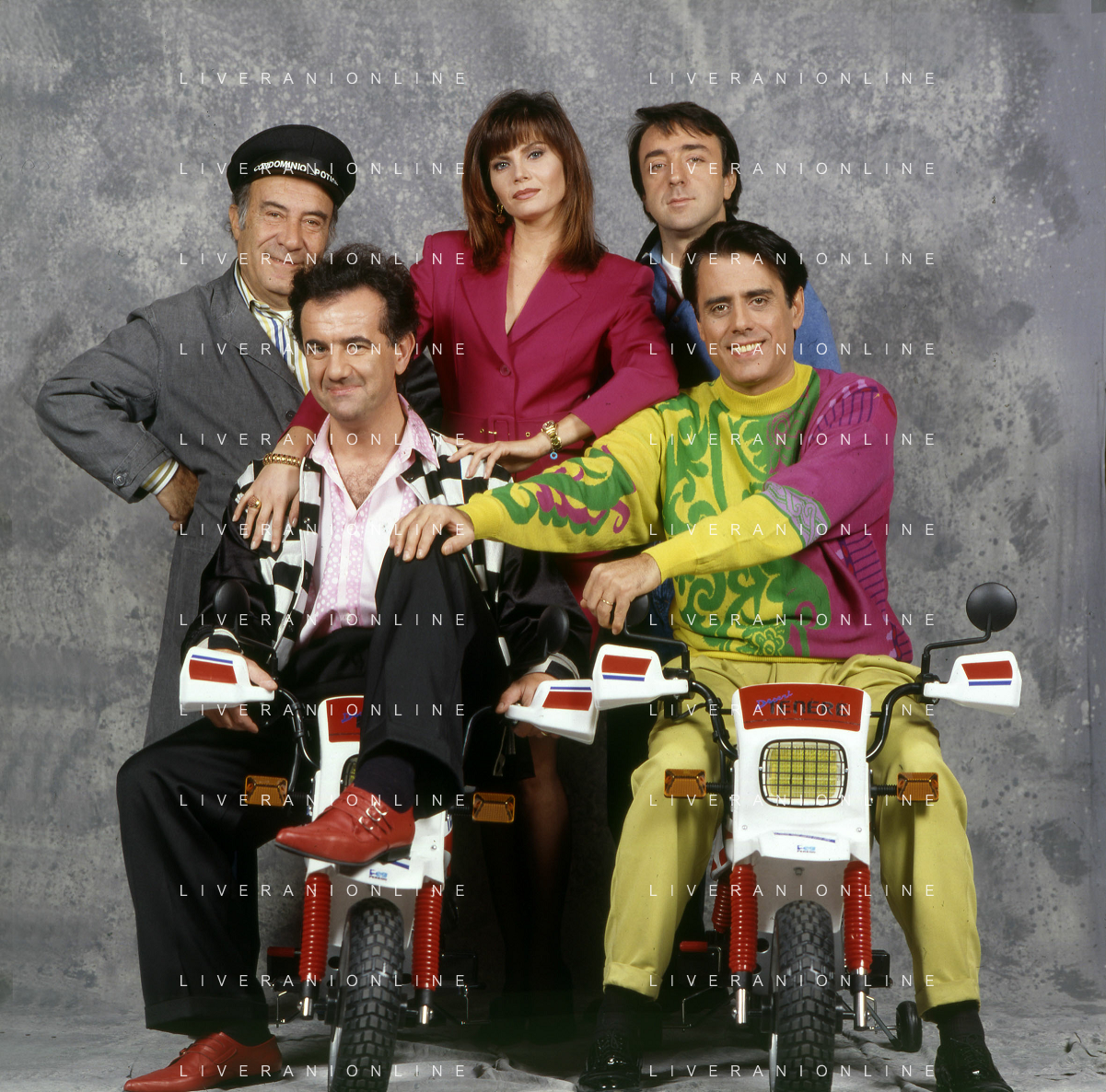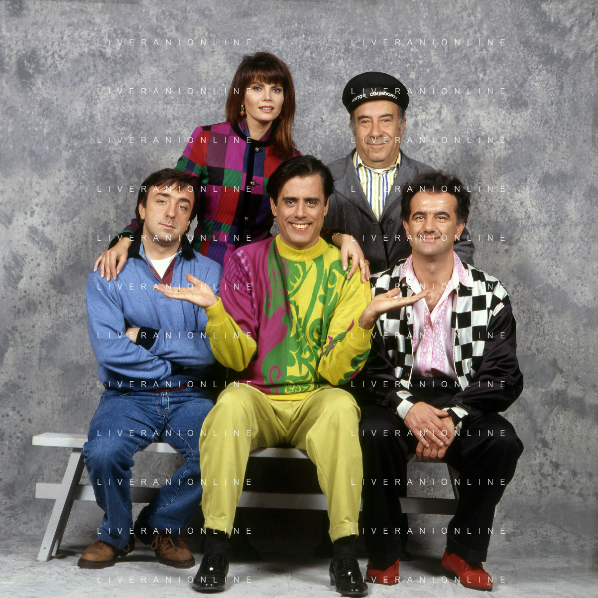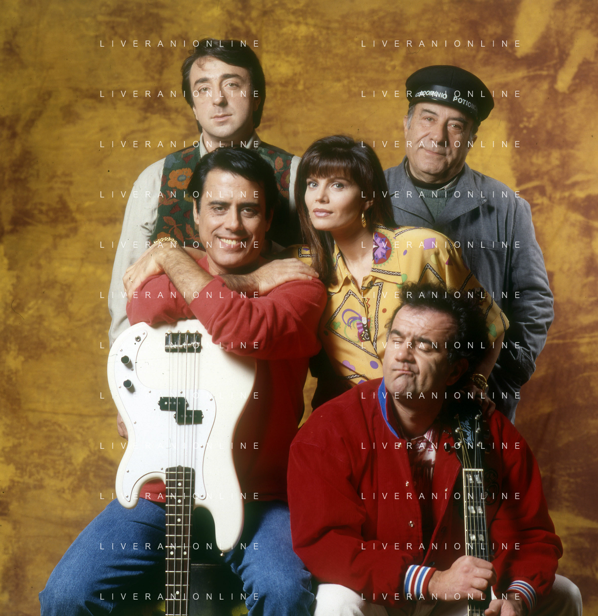 RETROSPETTIVA TEO TEOCOLI ATTORE NELLA FOTO TEO TEOCOLI NELLA SERIE TELEVISIVA“ VICINI DI CASA“ A MILANO NELL'ANNO 1991 CON ENZO CANNAVALE-GABRIELLA GOLIA-SILVIO ORLANDO E GENE GNOCCHI AG ALDO LIVERANI SAS
