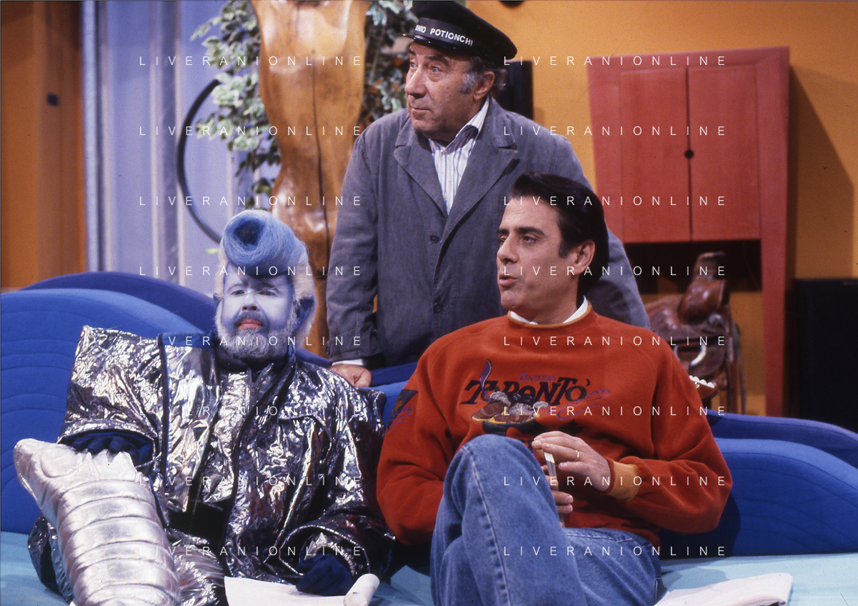 RETROSPETTIVA TEO TEOCOLI ATTORE NELLA FOTO TEO TEOCOLI NELLA SERIE TELEVISIVA“ VICINI DI CASA“ A MILANO NELL'ANNO 1991 CON GABRIELLA GOLIA-SILVIO ORLANDO GENE GNOCCHI AG ALDO LIVERANI SAS