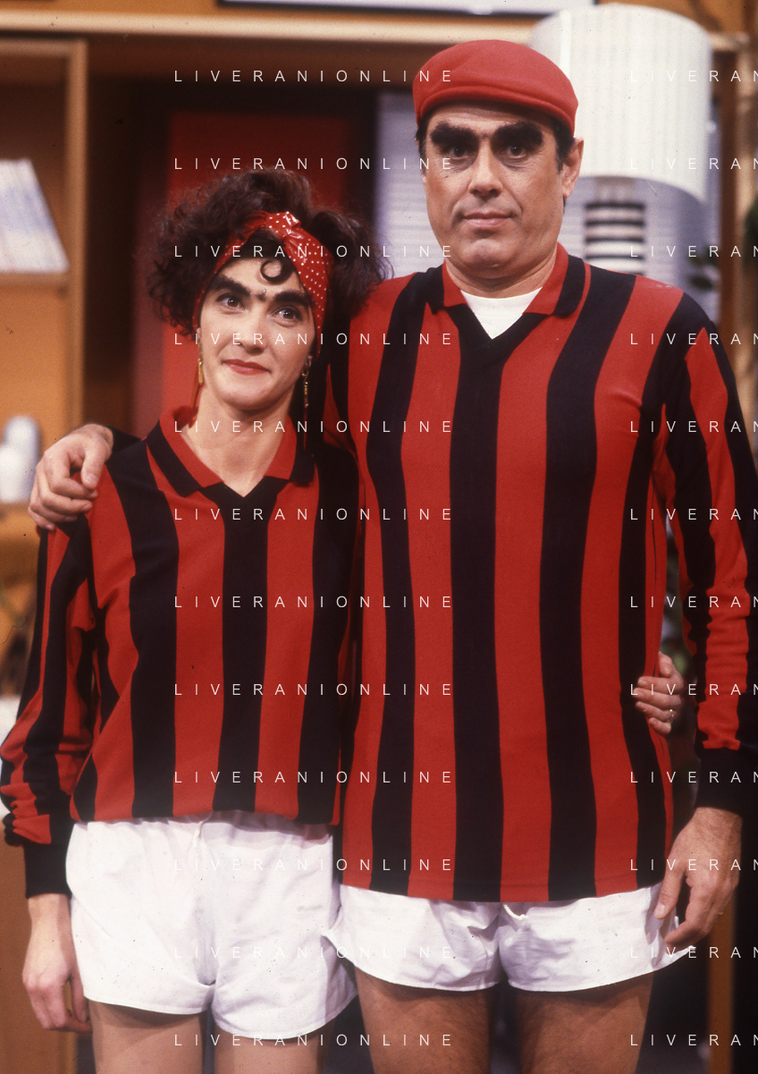 RETROSPETTIVA TEO TEOCOLI ATTORE NELLA FOTO TEO TEOCOLI NELLA SERIE TELEVISIVA“ VICINI DI CASA“ A MILANO NELL'ANNO 1991 CON MARIA AMELIA MONTI AG ALDO LIVERANI SAS