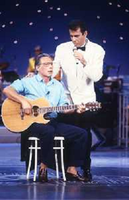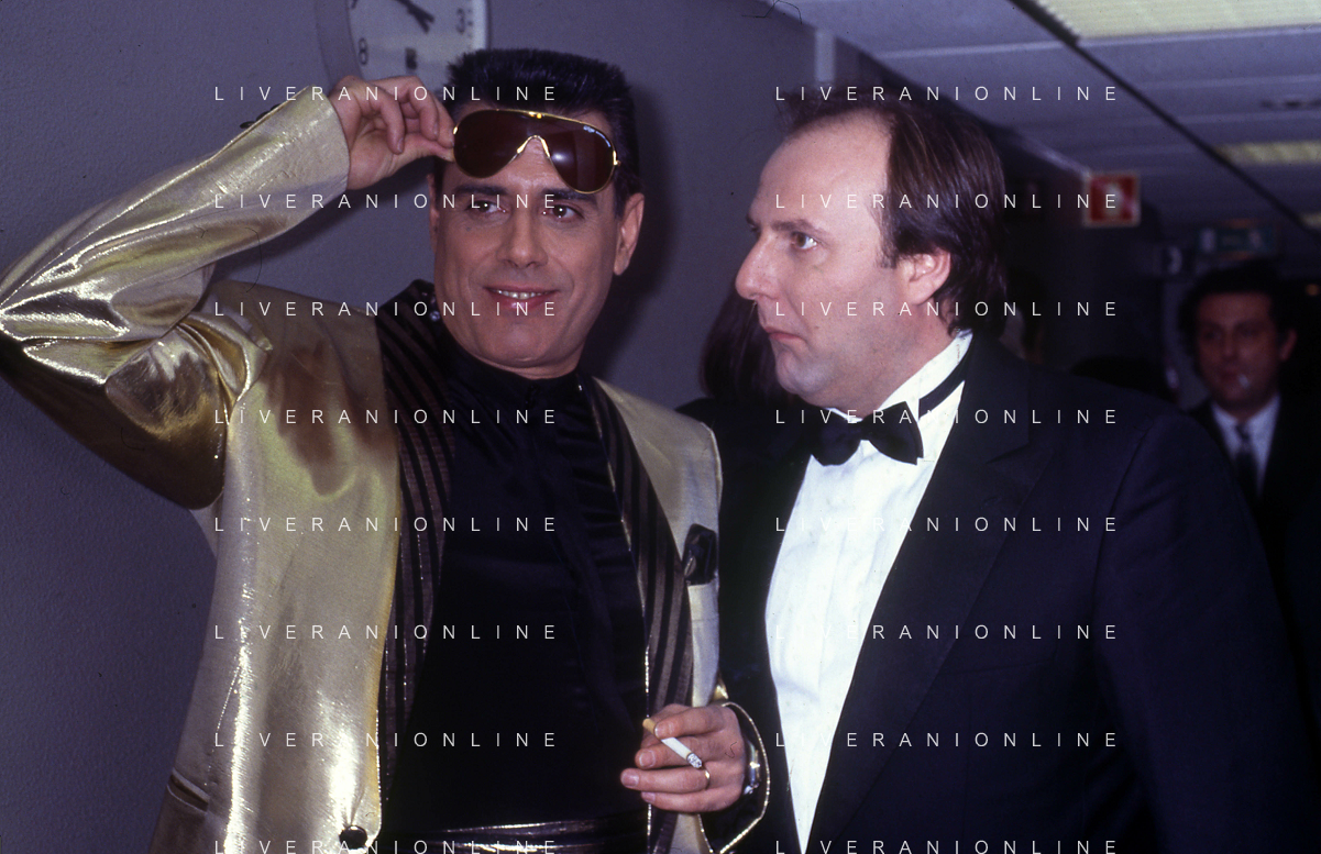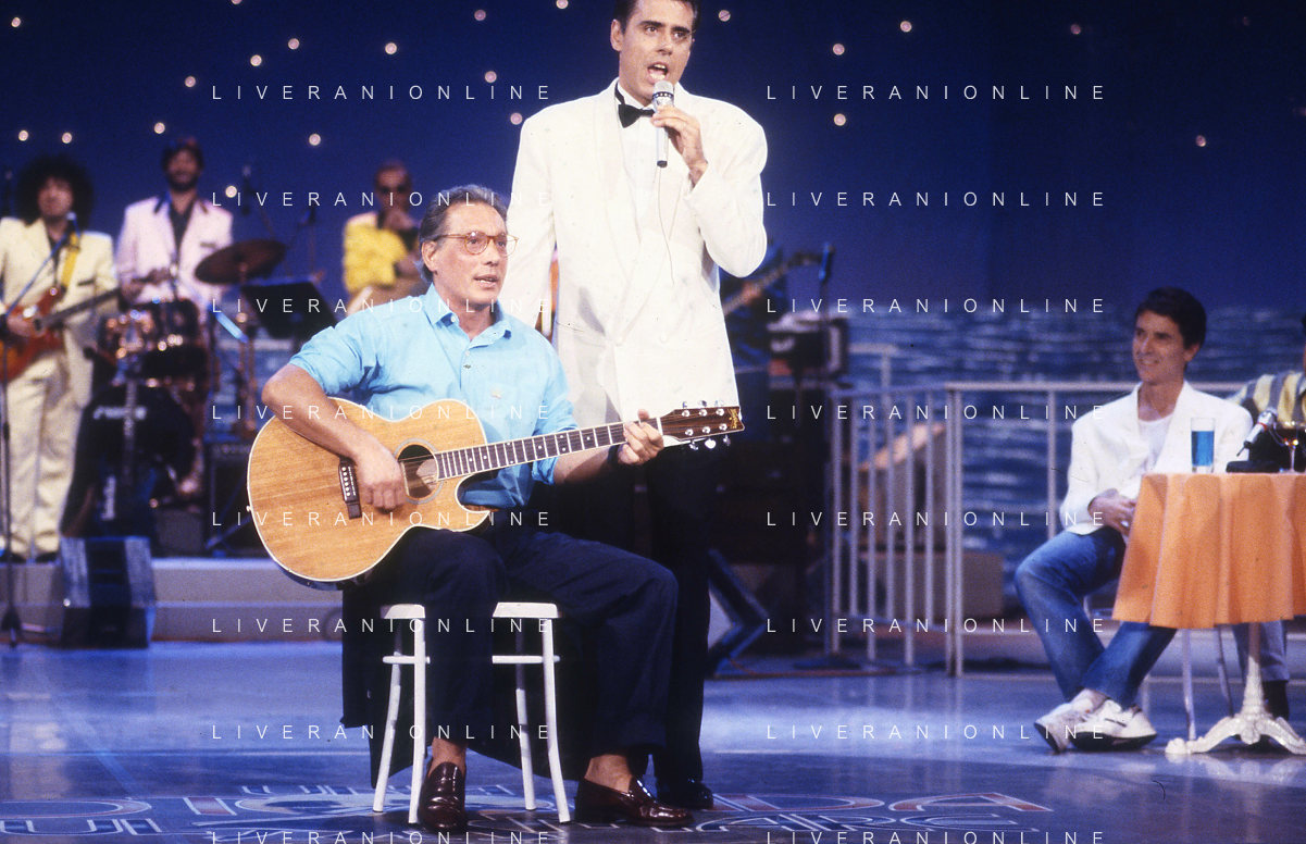 RETROSPETTIVA TEO TEOCOLI ATTORE NELLA FOTO TEO TEOCOLI CON ENZO JANNACCI NELL'ANNO 1990 NELLA TRASMISSIONE “UNA ROTONDA SUL MARE“ AG ALDO LIVERANI SAS