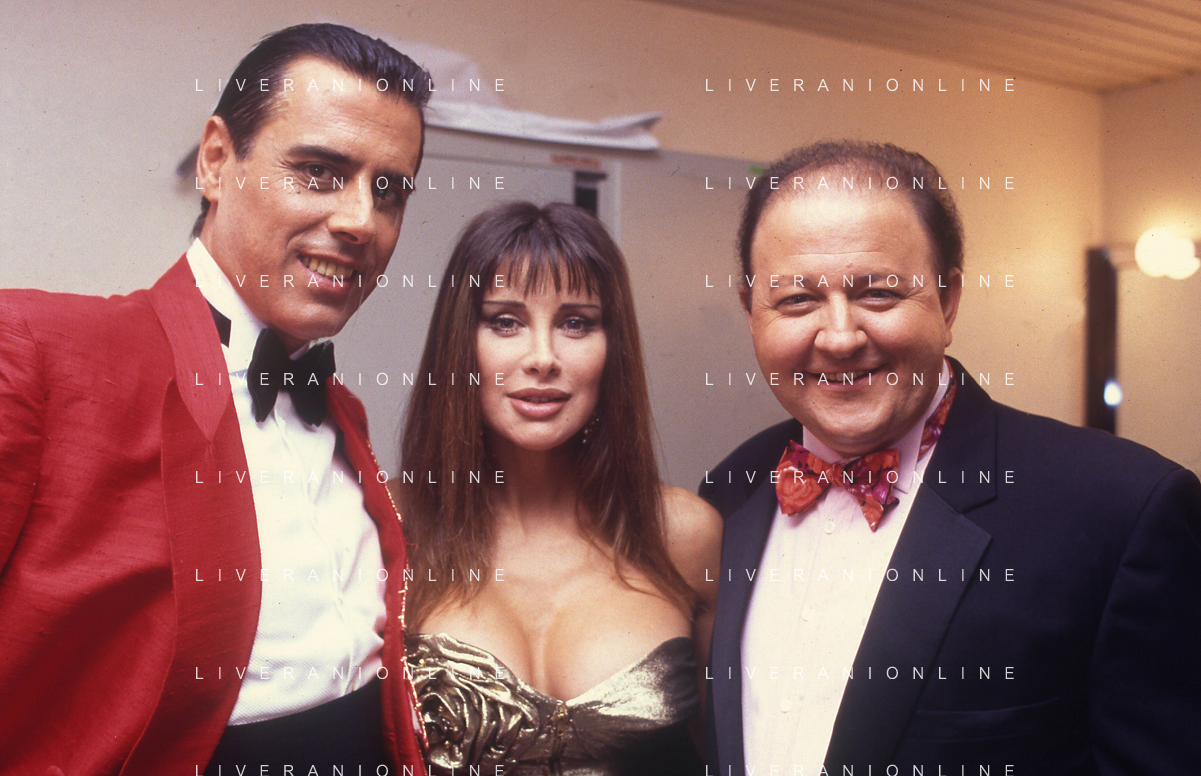 RETROSPETTIVA TEO TEOCOLI ATTORE NELLA FOTO TEO TEOCOLI CON VALENTINA FARNESE E MASSIMO BOLDI NELL'ANNO 1990 NELLA TRASMISSIONE “UNA ROTONDA SUL MARE“ AG ALDO LIVERANI SAS