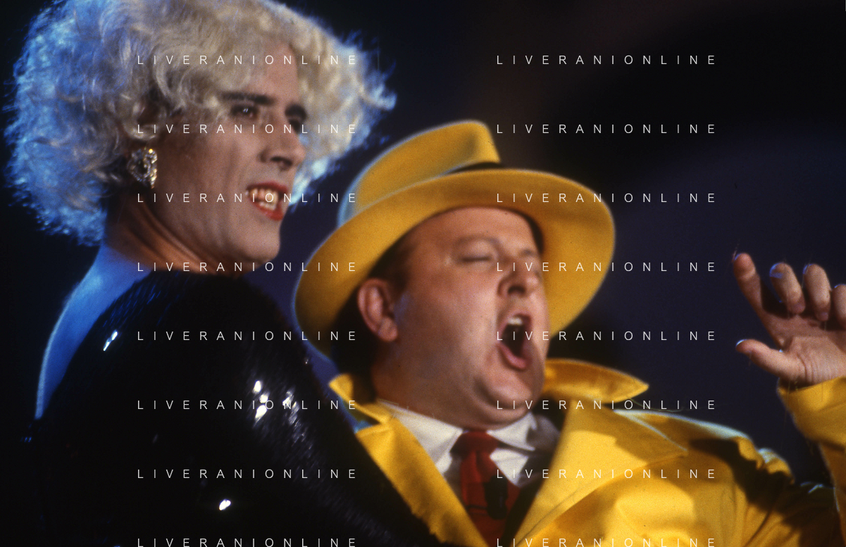 RETROSPETTIVA TEO TEOCOLI ATTORE NELLA FOTO TEO TEOCOLI CON MARCO COLUMBRO NELL'ANNO 1990 NELLA TRASMISSIONE “UNA ROTONDA SUL MARE“ AG ALDO LIVERANI SAS