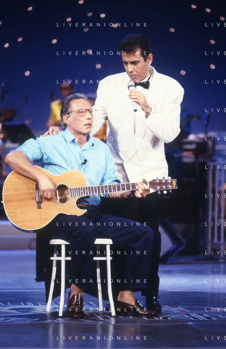 RETROSPETTIVA TEO TEOCOLI ATTORE NELLA FOTO TEO TEOCOLI CON MASSIMO BOLDI NELL'ANNO 1990 NELLA TRASMISSIONE “UNA ROTONDA SUL MARE“ AG ALDO LIVERANI SAS