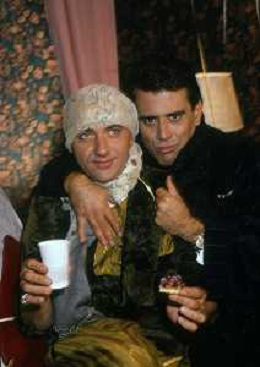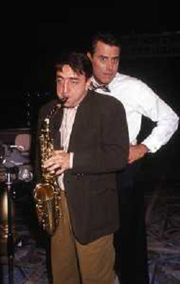 RETROSPETTIVA TEO TEOCOLI ATTORE NELLA FOTO TEO TEOCOLI CON SILVIO ORLANDO NELL'ANNO 1988 NELLA TRASMISSIONE TELEVISIVA “EMILIO“ AG ALDO LIVERANI SAS
