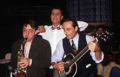 RETROSPETTIVA TEO TEOCOLI ATTORE NELLA FOTO TEO TEOCOLI CON SILVIO ORLANDO E NINO FORMICOLA NELL'ANNO 1988 NELLA TRASMISSIONE TELEVISIVA “EMILIO“ AG ALDO LIVERANI SAS