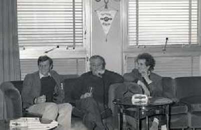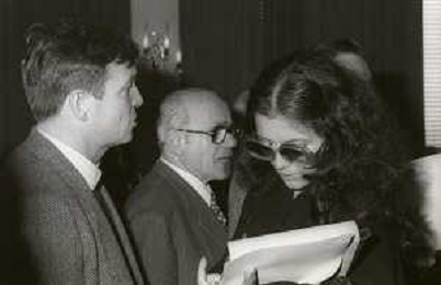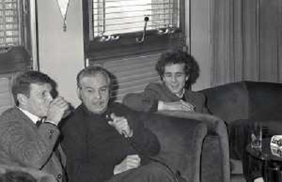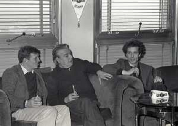 RETROSPETTIVA UMBERTO ORSINI ATTORE NELLA FOTO UMBERTO ORSINI A MILANO TERRAZZA MARTINI NELL'ANNO 1980 CON GIANNI SANTUCCIO E GIANCARLO SEPE AG ALDO LIVERANI SAS