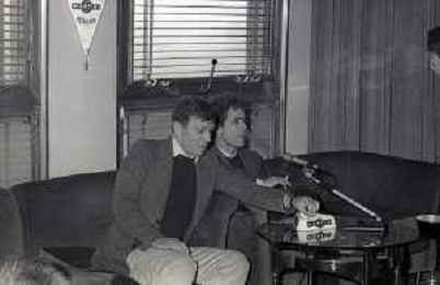 RETROSPETTIVA UMBERTO ORSII ATTORE NELLA FOTO UMBERTO ORSINI A MILANO TERRAZZA MARTINI NELL'ANNO 1980 E GIANCARLO SEPE REGISTA AG ALDO LIVERANI SAS