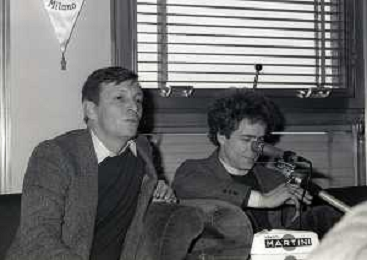 RETROSPETTIVA UMBERTO ORSINI ATTORE NELLA FOTO UMBERTO ORSINI A MILANO TERRAZZA MARTINI NELL'ANNO 1980 CON GIANNI SANTUCCIO AG ALDO LIVERANI SAS