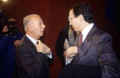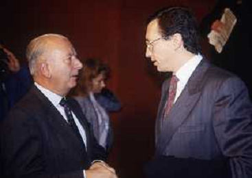 RETROSPETTIVA GIANFRANCO FINI POLITICO NELLA FOTO GIANFRANCO FINI NELL'ANNO 1989 CON FRANCO SERVELLO AG ALDO LIVERANI SAS