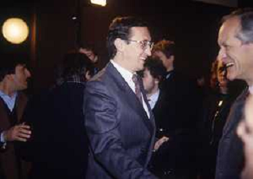 RETROSPETTIVA GIANFRANCO FINI POLITICO NELLA FOTO GIANFRANCO FINI NELL'ANNO 1989CON IGNAZIO LARUSSA AG ALDO LIVERANI SAS