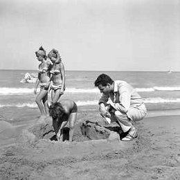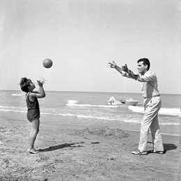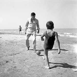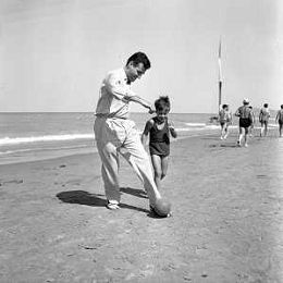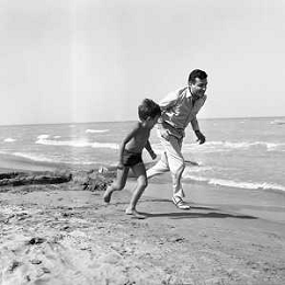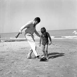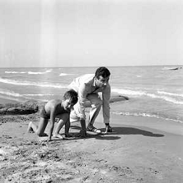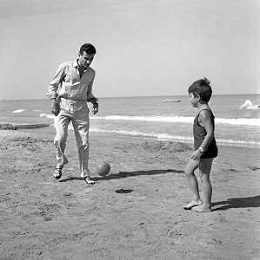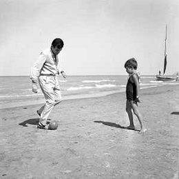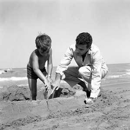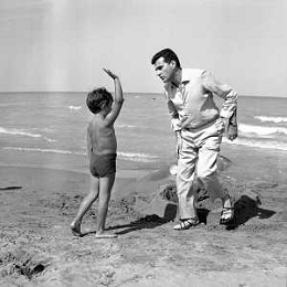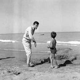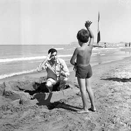RETROSPETTIVA FERRUCCIO RICORDI IN ARTE TEDDY RENO CANTANTE E ATTORE - NELLA FOTO CON IL FIGLIO FRANCO AL MARE IN SPIAGGIA A CESENATICO NEL 1964 ©Archivio Giovanni Liverani/AG. ALDO LIVERANI SAS