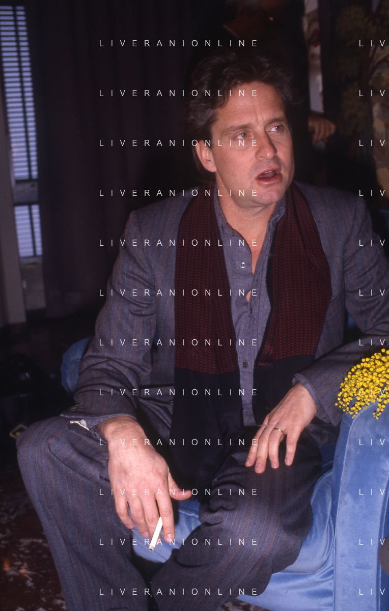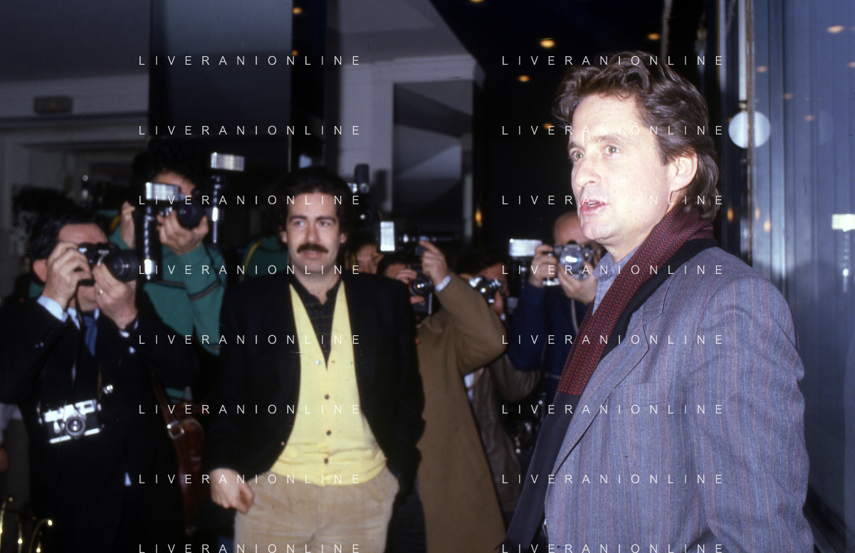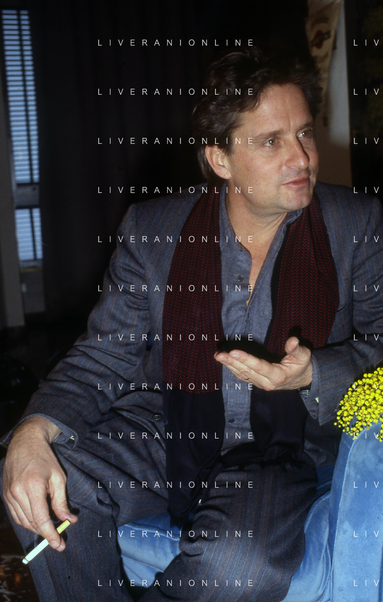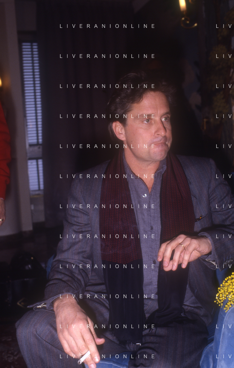 RETROSPETTIVA MICHAEL DOUGLAS ATTORE NELLA FOTO MICHAEL DOUGLAS A MILANO NELL'ANNO 1986 AG ALDO LIVERANI SAS