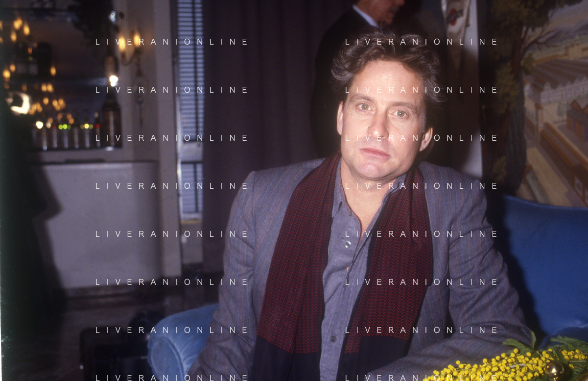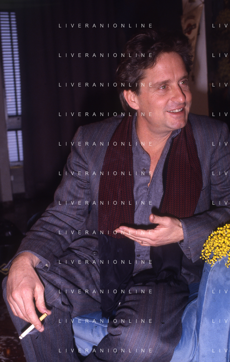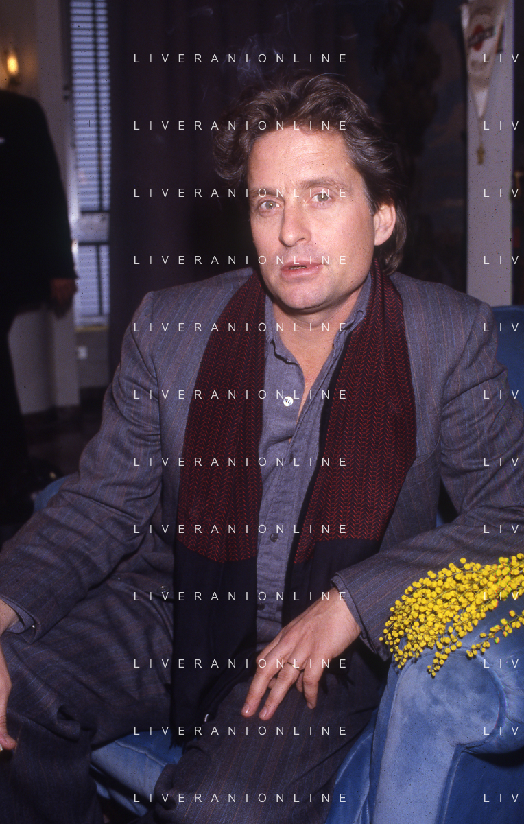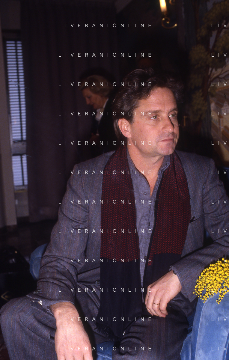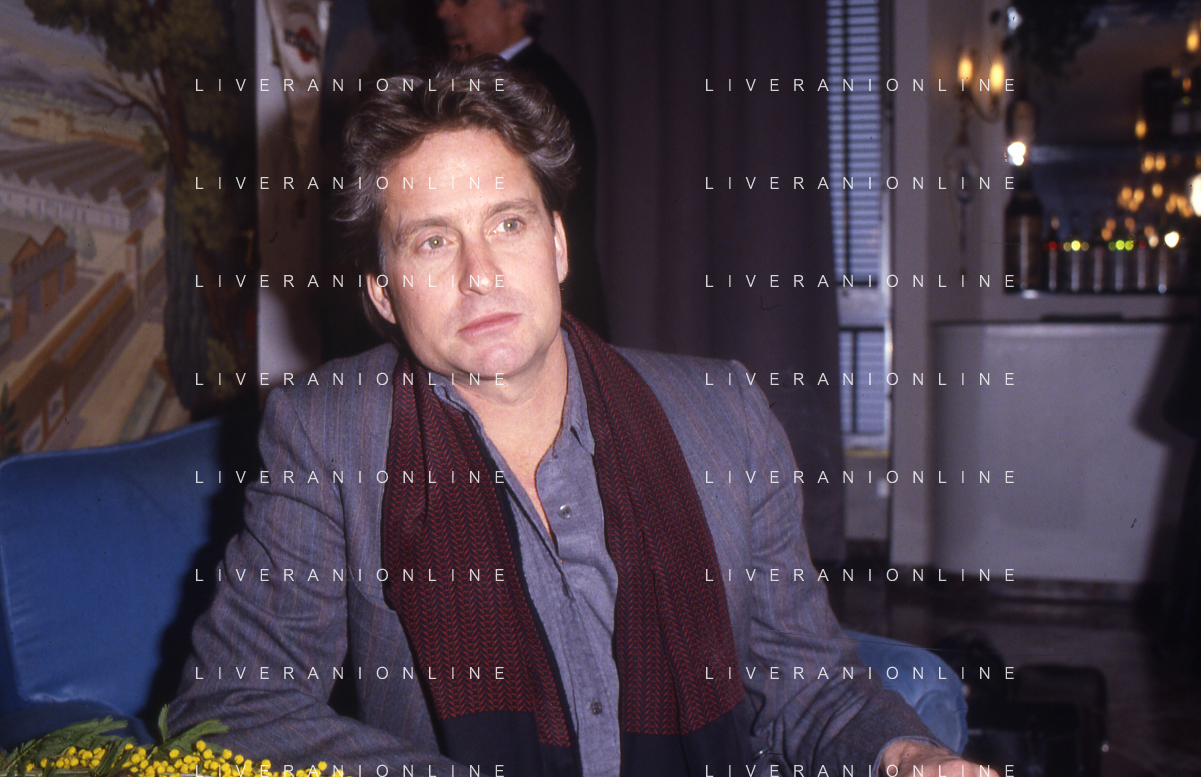 RETROSPETTIVA MICHAEL DOUGLAS ATTORE NELLA FOTO MICHAEL DOUGLAS A MILANO NELL'ANNO 1986 AG ALDO LIVERANI SAS