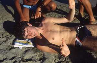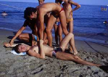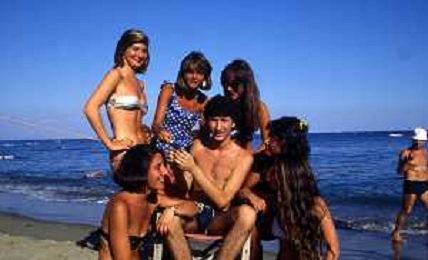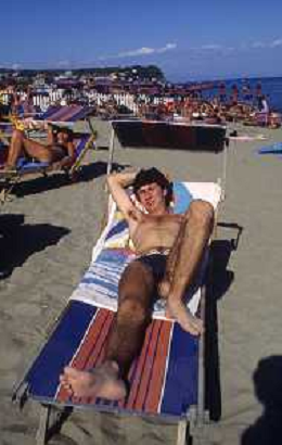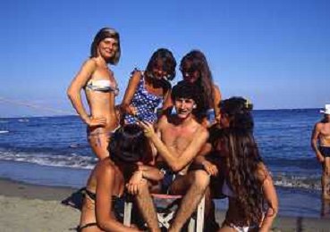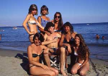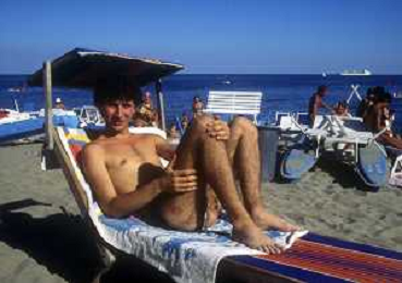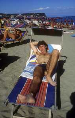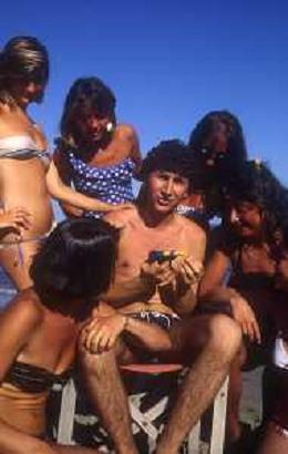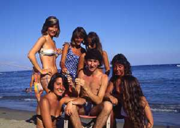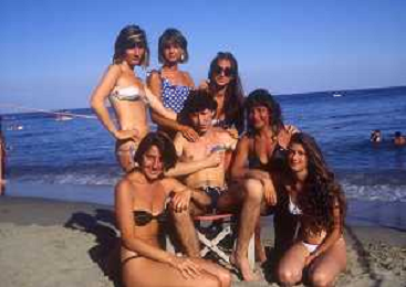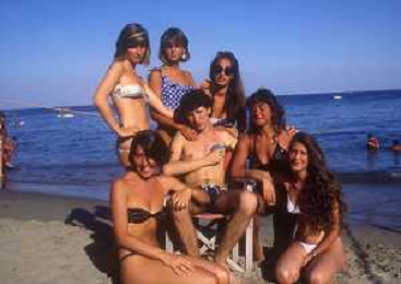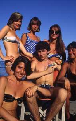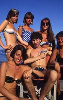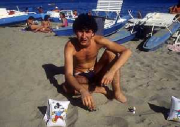 RETROSPETTIVA FABIO AGOSTINO FRANCESCO FAZIO CONDUTTORE TELEVISIVO-IMITATORE-SCRITTORE E PRODUTTORE ARTISTICO NELLA FOTO FABIO FAZIO NELL'ANNO 1984 IN LIGURIA CON GLI AMICI AG ALDO LIVERANI SAS