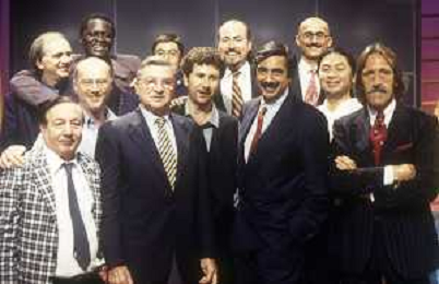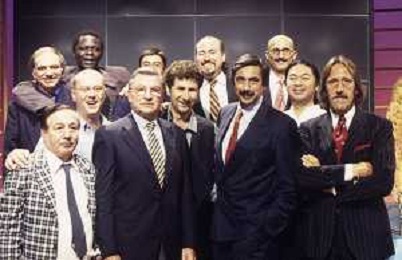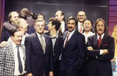 RETROSPETTIVA FABIO AGOSTINO FRANCESCO FAZIO CONDUTTORE TELEVISIVO-IMITATORE-SCRITTORE E PRODUTTORE ARTISTICO NELLA FOTO FABIO FAZIO CON CARLO SASSI MARINO BARTOLETTI E IL CAST DI QUELLI DEL CALCIO AG ALDO LIVERANI SAS