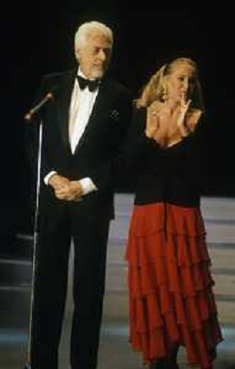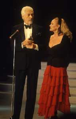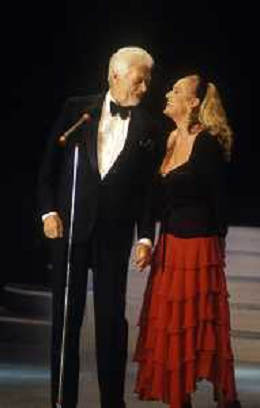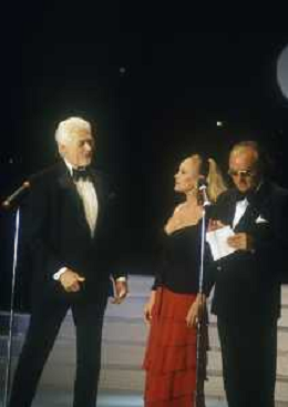RETROSPETTIVA JAMES COBURN ATTORE NELLA FOTO JAMES COBURN NELL'ANNO 1992 A CERNOBBIO CON URSULA ANDRESS AG ALDO LIVERANI SAS