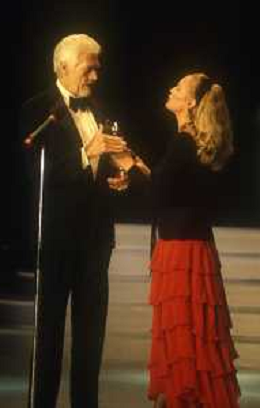 RETROSPETTIVA JAMES COBURN ATTORE NELLA FOTO JAMES COBURN CON LA MOGLIE BEVERLY KELLY NELL'ANNO 1977 AG ALDO LIVERANI SAS