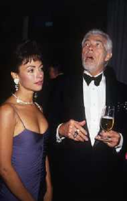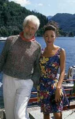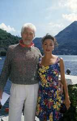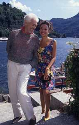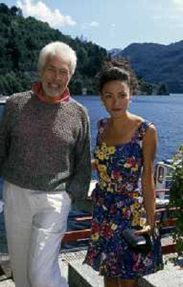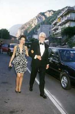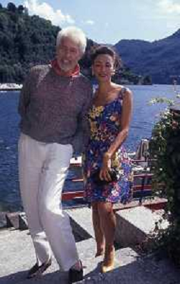 RETROSPETTIVA JAMES COBURN ATTORE NELLA FOTO JAMES COBURN CON LA MOGLIE PAULA O'HARA A CERNOBBIO NELL'ANNO 1992 AG ALDO LIVERANI SAS