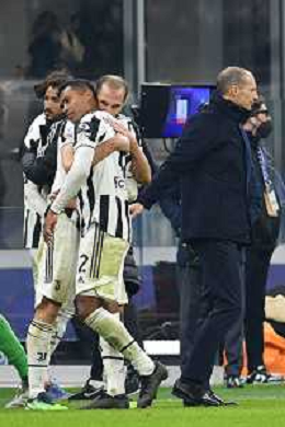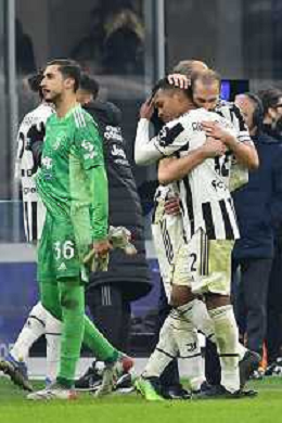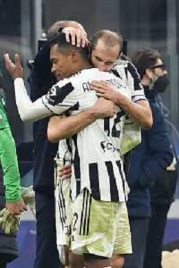 Milano 12.01.2022 Stadio Giuseppe Meazza ©Alessandro Falzone/Agenzia Aldo Liverani Inter vs Juventus Supercoppa Frecciarossa Nella foto : Alex Sandro consolato da Giorgio Chiellini e Massimiliano Allegri