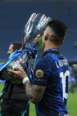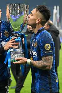 festeggiamenti Inter dopo la premiazione - lautaro martinez bacia il trofeo Inter vs Juventus Finale Supercoppa Frecciarossa Milano 12-01-2022 Stadio Giuseppe Meazza - San Siro foto Roberto Garavaglia/ag. Aldo Liverani sas /AGENZIA ALDO LIVERANI SAS