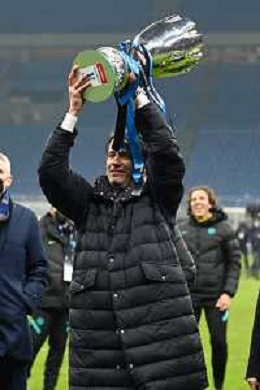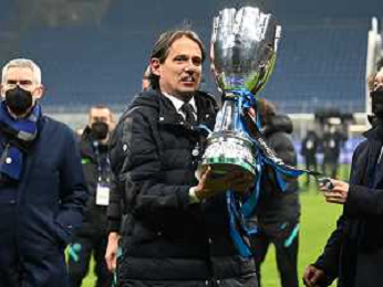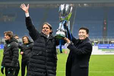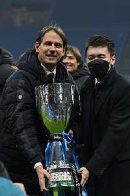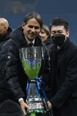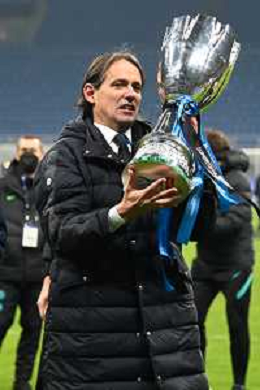 Milano 12.01.2022 Stadio Giuseppe Meazza ©Alessandro Falzone/Agenzia Aldo Liverani Inter vs Juventus Supercoppa Frecciarossa Nella foto : Simone Inzaghi con la Supercoppa