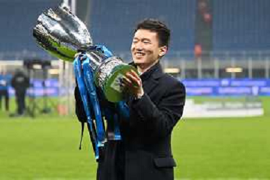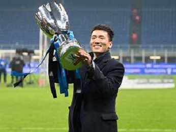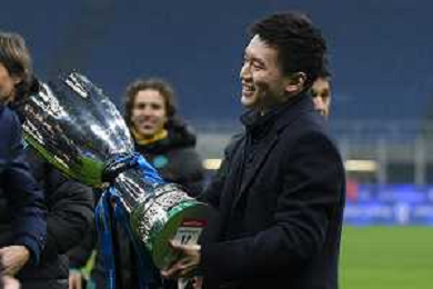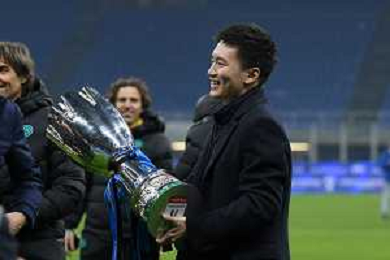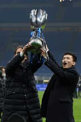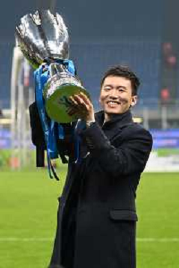Milano 12.01.2022 Stadio Giuseppe Meazza ©Alessandro Falzone/Agenzia Aldo Liverani Inter vs Juventus Supercoppa Frecciarossa Nella foto : Steven Zhang con la Supercoppa
