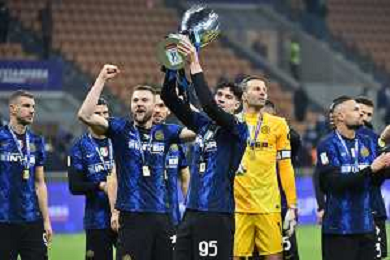 Milano 12.01.2022 Stadio Giuseppe Meazza ©Alessandro Falzone/Agenzia Aldo Liverani Inter vs Juventus Supercoppa Frecciarossa Nella foto : Premiazione Finale Inter