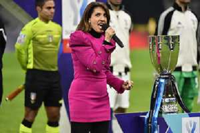 Arianna Bergamaschi canta l'inno nazionale Inter vs Juventus Finale Supercoppa Frecciarossa Milano 12-01-2022 Stadio Giuseppe Meazza - San Siro foto Roberto Garavaglia/ag. Aldo Liverani sas /AGENZIA ALDO LIVERANI SAS