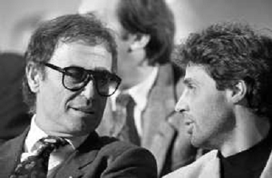 RETROSPETTIVA FRANCO CALIFANO CANTANTE NELLA FOTO AL FESTIVAL DI SANREMO NEL FEBBRAIO 1988 CON LUCA BARBAROSSA ©ARCHIVIO AGENZIA ALOD LIVERANI SAS