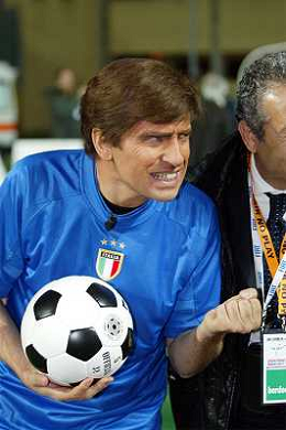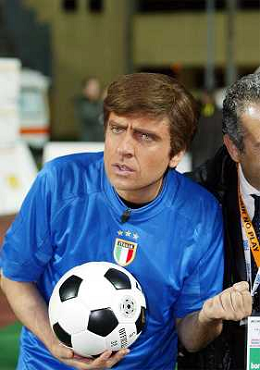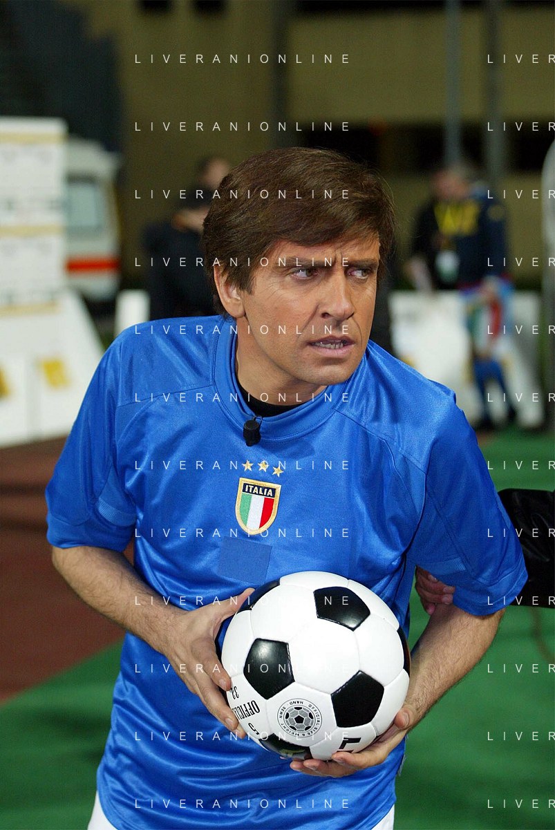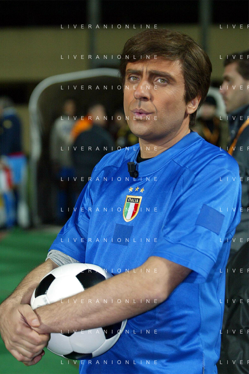 PADOVA 14/11/2005 'NO FAIR - NO PLAY' PARTITA DI BENEFICENZA TRA NAZIONALE CALCIO TV E SELEZIONE ALLENATORI DI CALCIO NELLA FOTO: DARIO BALLANTINI (IMITA GIANNI MORANDI) FOTO PAOLA GARBUIO/AGENZIA ALDO LIVERANI