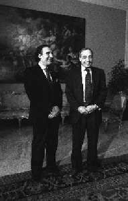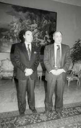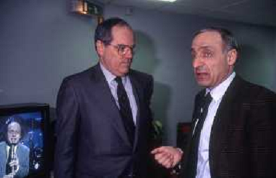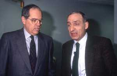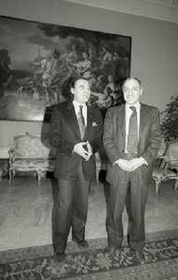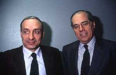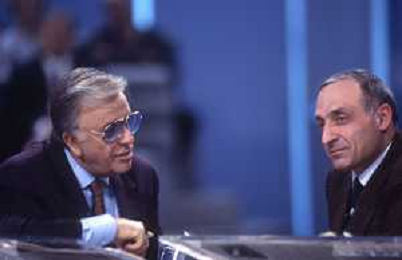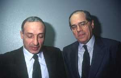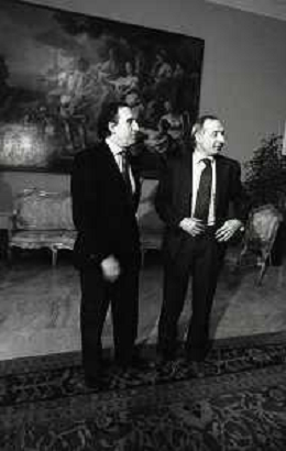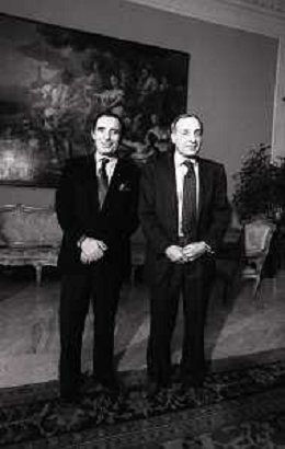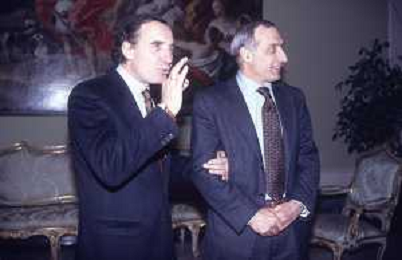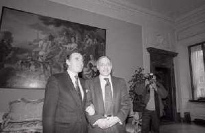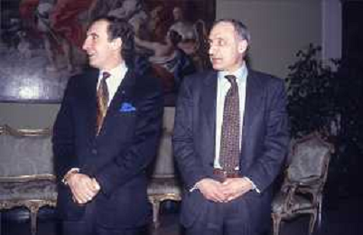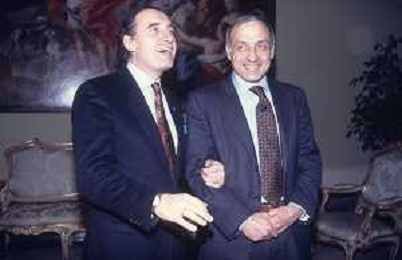 RETROSPETTIVA GIAMPIERO BORGHINI POLITICO NELLA FOTO GIAMPIERO BORGHINI NELL'ANNO 1992 CON GIANFRANCO FUNARI AG ALDO LIVERANI SAS