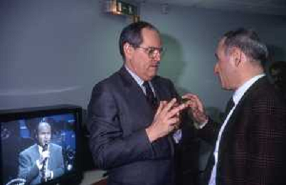 RETROSPETTIVA GIAMPIERO BORGHINI POLITICO NELLA FOTO GIAMPIERO BORGHINI NELL'ANNO 1992 CON GIUSEPPE ZOLA AG ALDO LIVERANI SAS