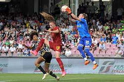 Stadio Arechi Salerno Finale Coppa Italia Femminile 2022-2023 Juventus-Roma In foto: Pauline Peyraud-Magnin in uscita alta su Benedetta Glionna e Sara Gama ©Andrea Rosito / AGENZIA ALDO LIVERANI SAS