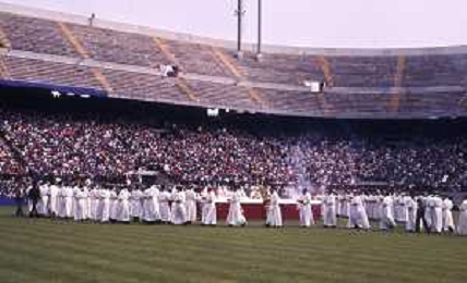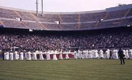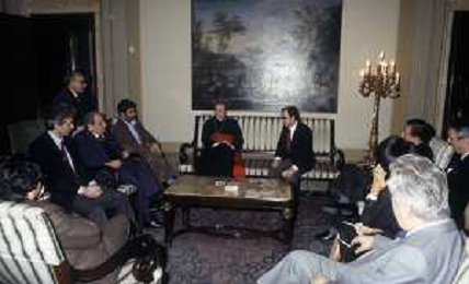 RETROSPETTIVA CARDINALE CARLO MARIA MARTINI NELLA FOTO IL CARDINALE CARLO MARIA MARTINI A MILANO NELL'ANNO 1983 COI CRESIMANDI AG ALDO LIVERANI SAS