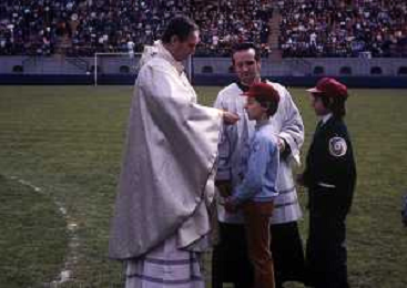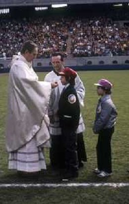 RETROSPETTIVA CARDINALE CARLO MARIA MARTINI NELLA FOTO IL CARDINALE CARLO MARIA MARTINI CON I RAGAZZI DELL'ORATORIO NELL'ANNO 1984 AG ALDO LIVERANI SAS