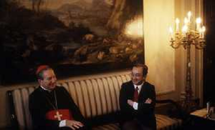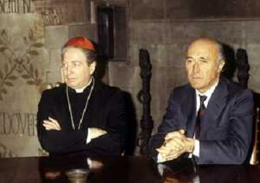 RETROSPETTIVA CARDINALE CARLO MARIA MARTINI NELLA FOTO IL CARDINALE CARLO MARIA MARTINI A MILANO NELL'ANNO 1984 CON IL SINDACO CARLO TOGNOLI AG ALDO LIVERANI SAS