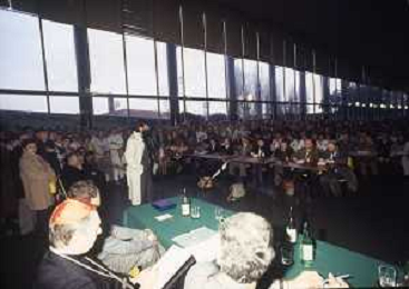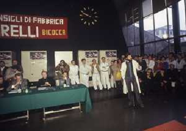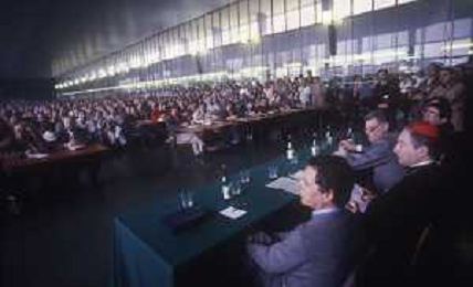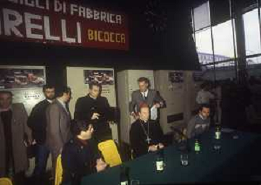 RETROSPETTIVA CARDINALE CARLO MARIA MARTINI NELLA FOTO IL CARDINALE CARLO MARIA MARTINI A MILANO NELL'ANNO 1985 IN UN INCONTRO CON GLI OPERAI DELLA PIRELLI AG ALDO LIVERANI SAS