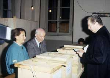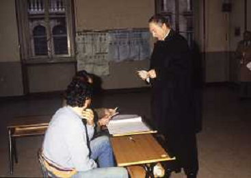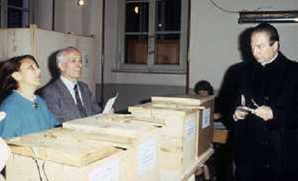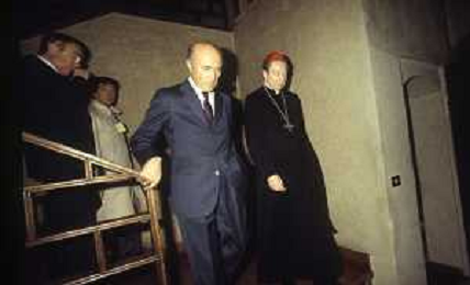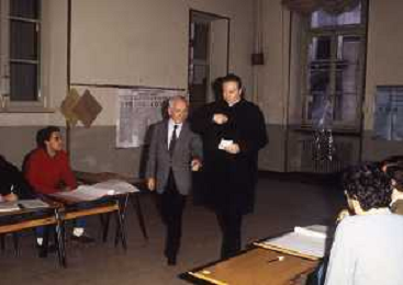RETROSPETTIVA CARDINALE CARLO MARIA MARTINI NELLA FOTO IL CARDINALE CARLO MARIA MARTINI A MILANO NELL'ANNO 1985 AL SEGGIO PER LE VOTAZIONI AG ALDO LIVERANI SAS