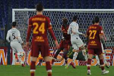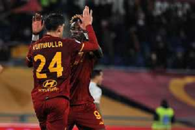 Roma vs Lecce Coppa Italia - Ottavi di finale Stadio Olimpico - Roma 20-01-2022 nella foto Gol Marash Kumbulla ©Federico Gaetano/AGENZIA ALDO LIVERANI SAS