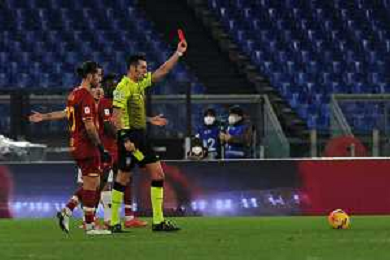Roma vs Lecce Coppa Italia - Ottavi di finale Stadio Olimpico - Roma 20-01-2022 nella foto Volpi espelle Gargiulo ©Federico Gaetano/AGENZIA ALDO LIVERANI SAS