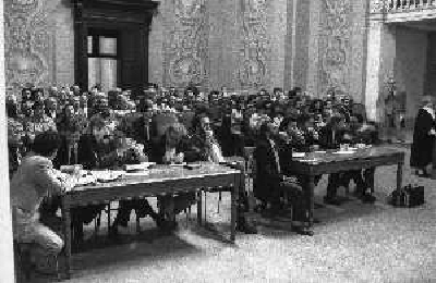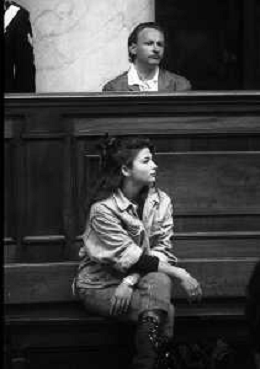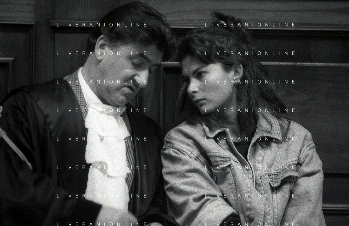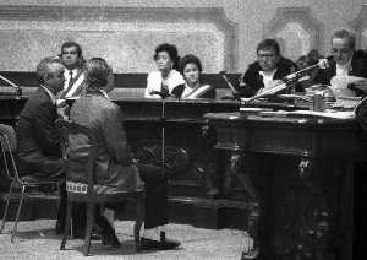 MAGGIO 1987-PARMA PROCESSO PER L'OMICIDIO DELL'IMPRENDITORE CARLO MAZZA NELLA FOTO I DUE PRESUNTI IMPUTATI KATHARINA MIROSLAWA E IL MARITO WITOLD KIELBASINSKI IN AULA A PAMA DURANTE IL PROCESSO AG ALDO LIVERANI SAS