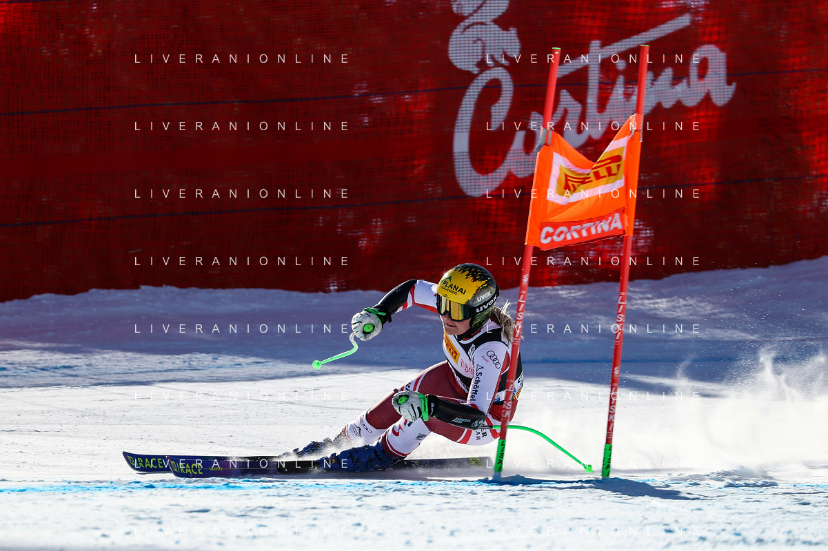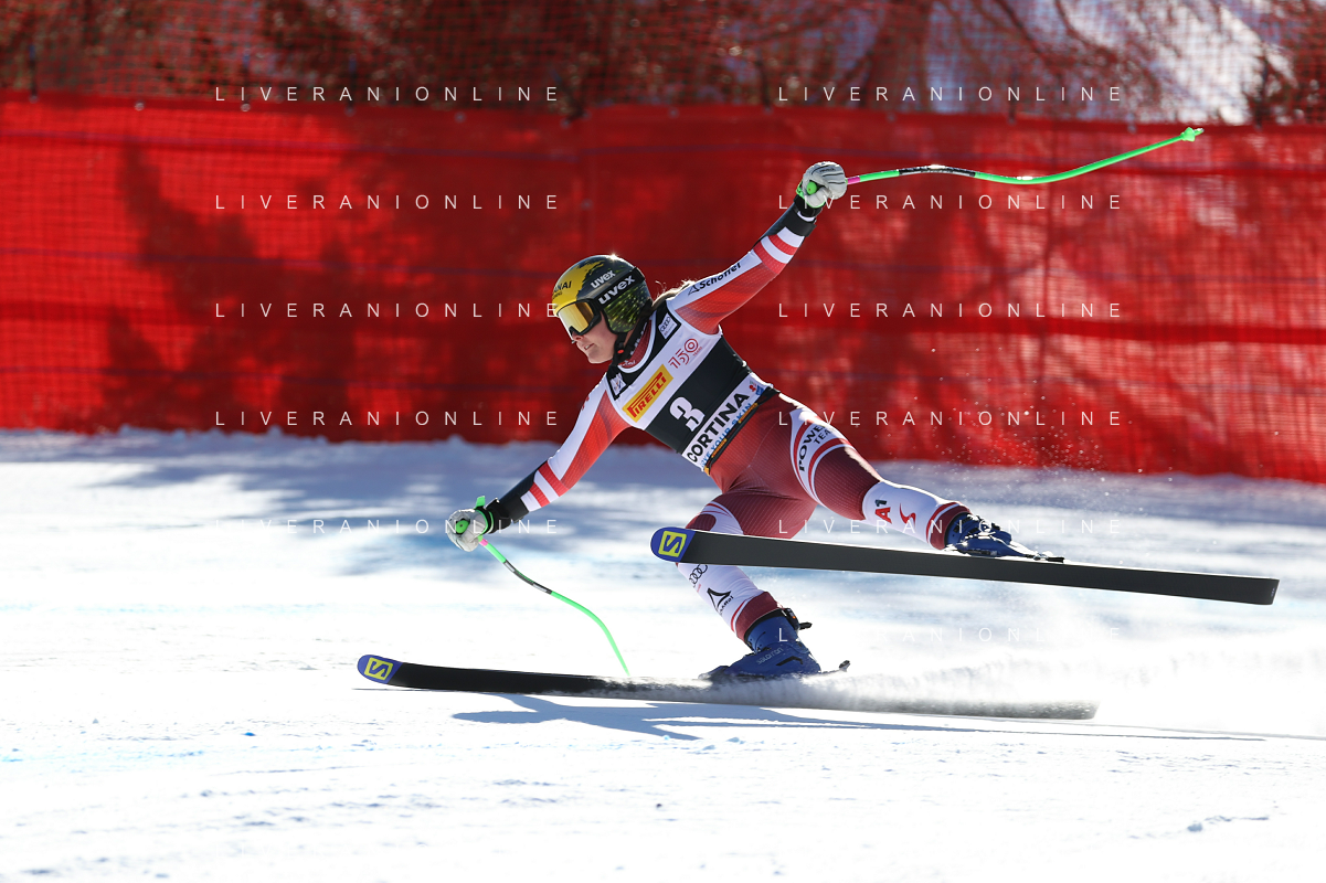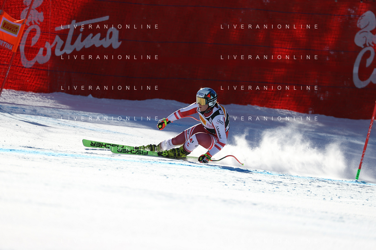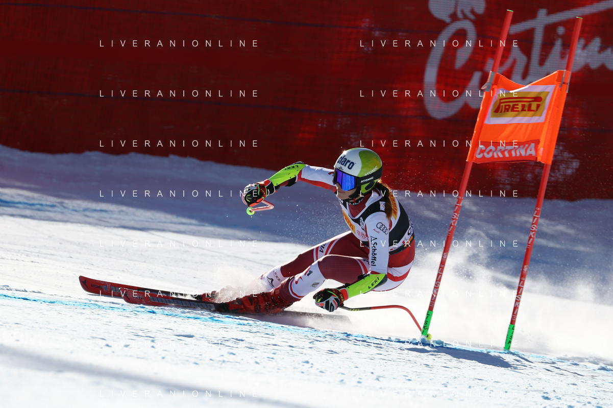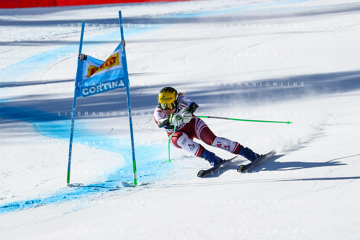Luca Tedeschi/LMedia - 2022 FIS Ski World Cup - Women Super Giant - alpine ski race January 23 2022 - Olympia slope Cortina Ampezzo, Italy 2022 FIS Ski World Cup - Women Super Giant Photo showing: Mirjam Puchner (AUT) @Luca Tedeschi/LiveMedia AG ALDO LIVERANI SAS