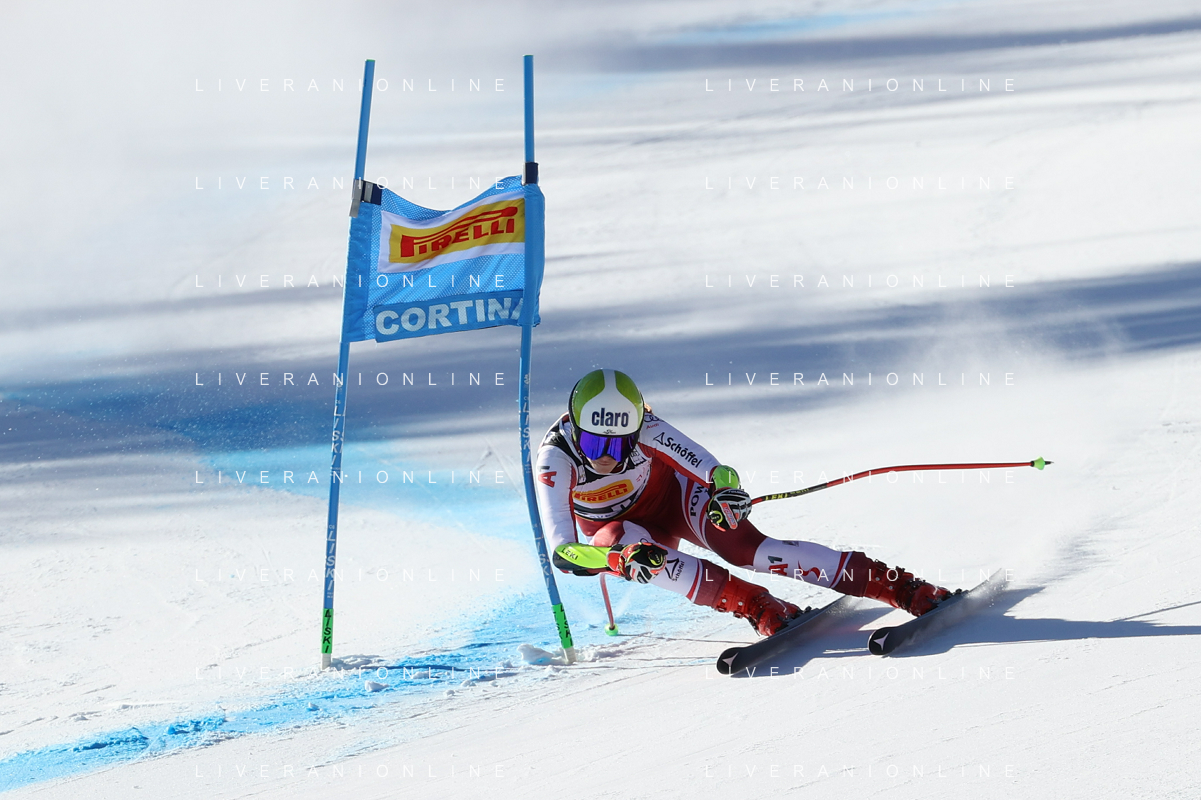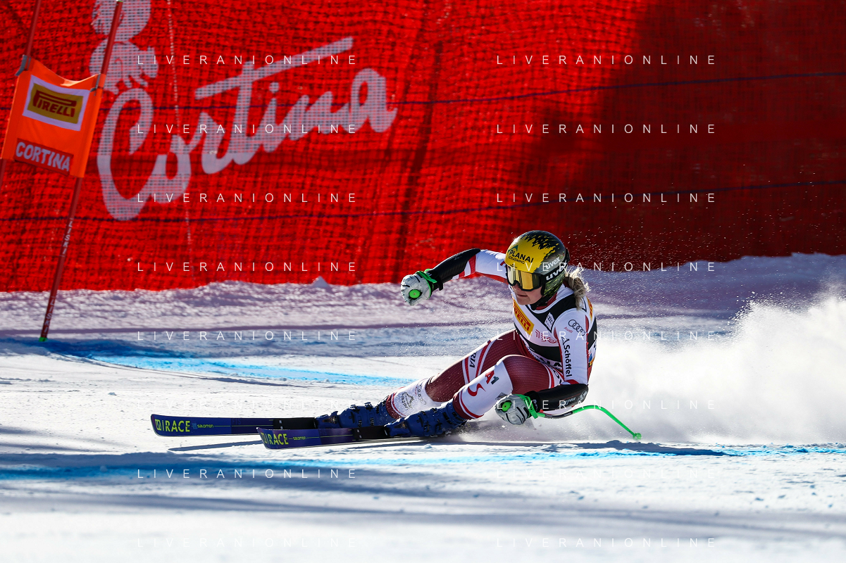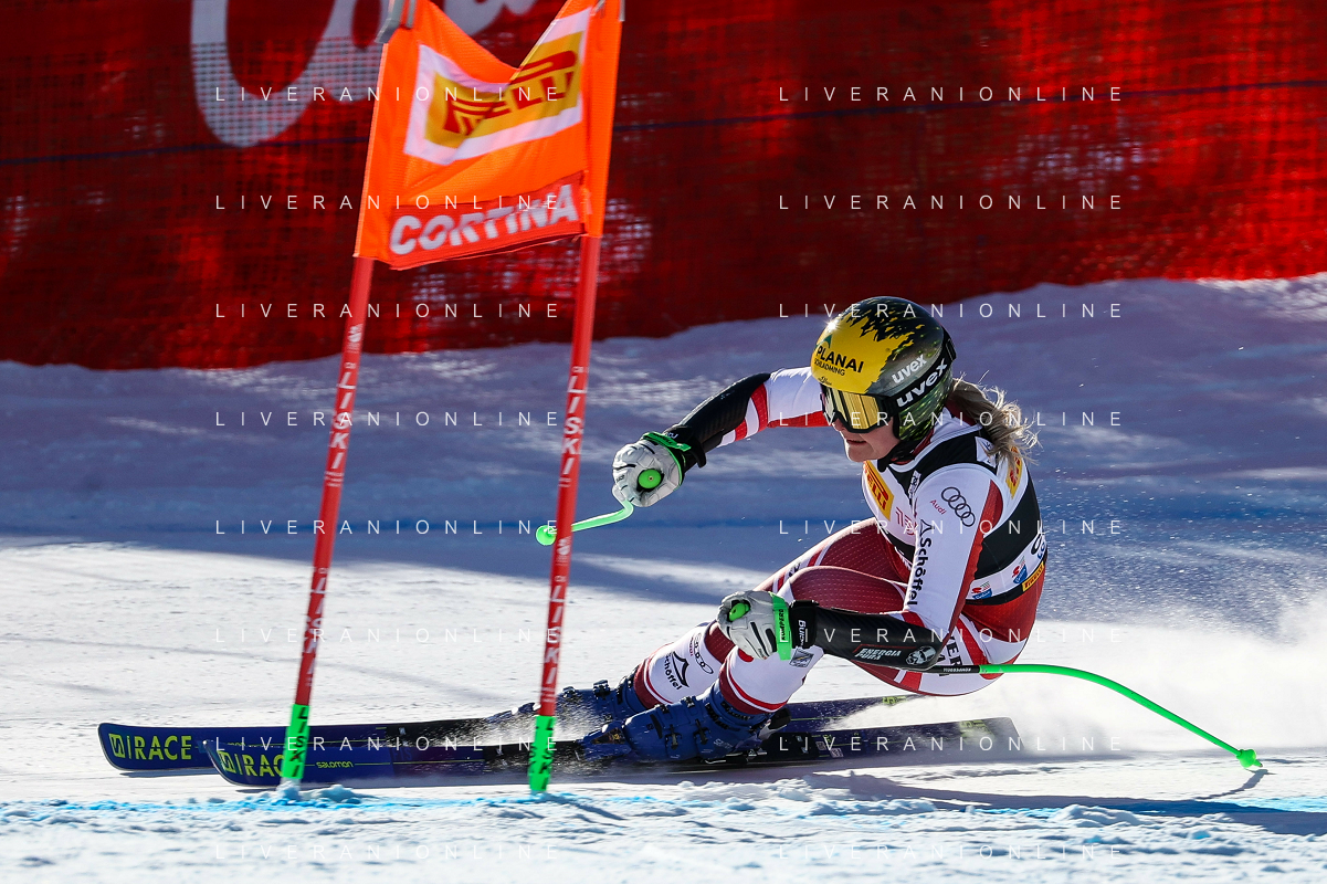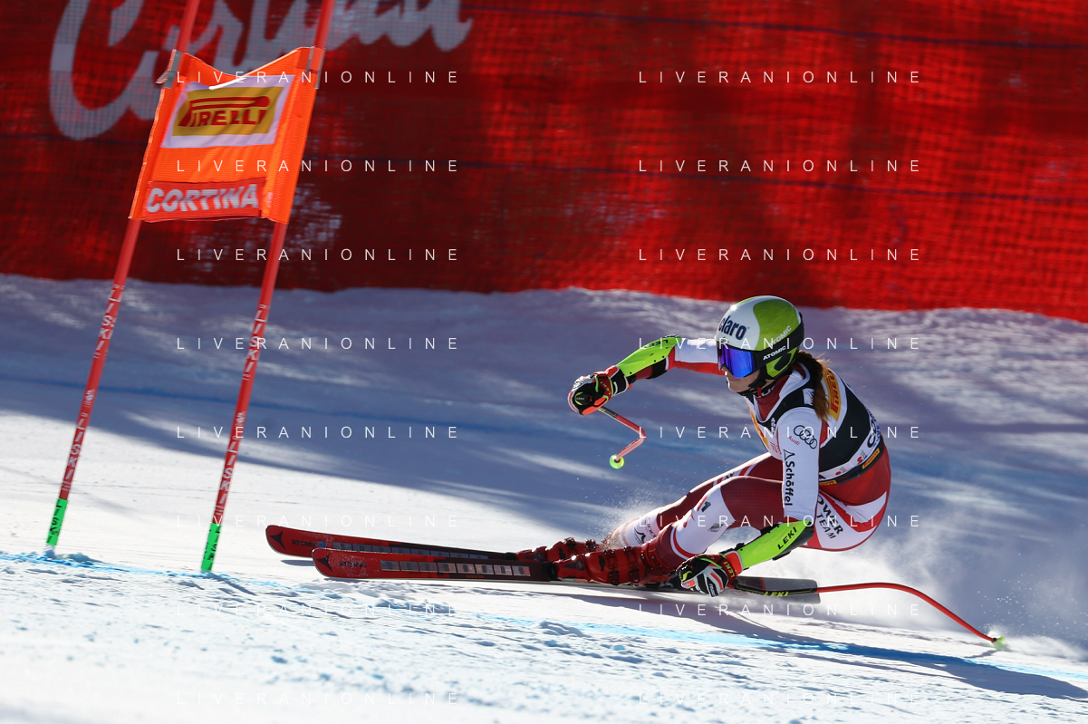 Luca Tedeschi/LMedia - 2022 FIS Ski World Cup - Women Super Giant - alpine ski race January 23 2022 - Olympia slope Cortina Ampezzo, Italy 2022 FIS Ski World Cup - Women Super Giant Photo showing: Mirjam Puchner (AUT) @Luca Tedeschi/LiveMedia AG ALDO LIVERANI SAS