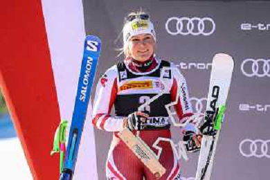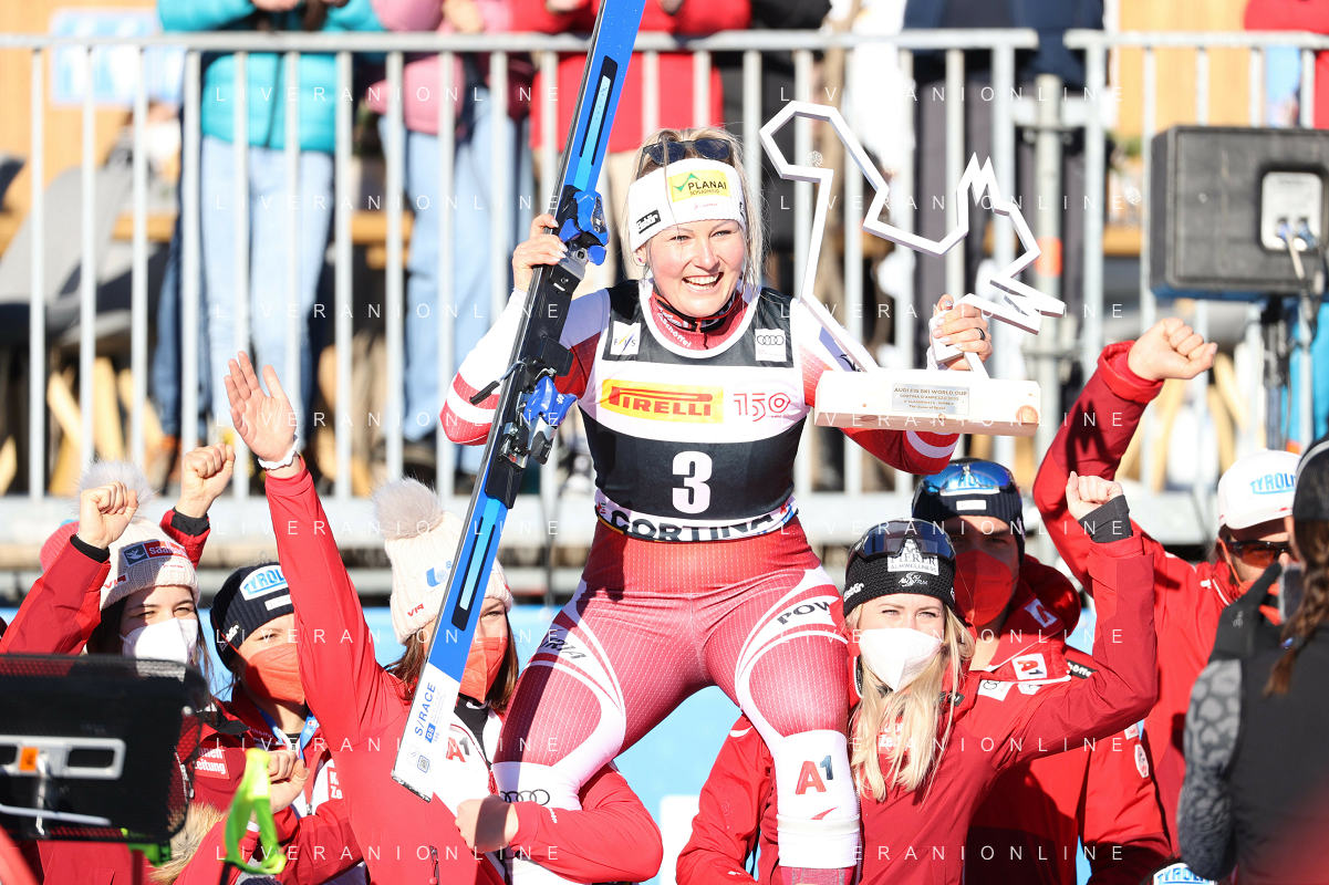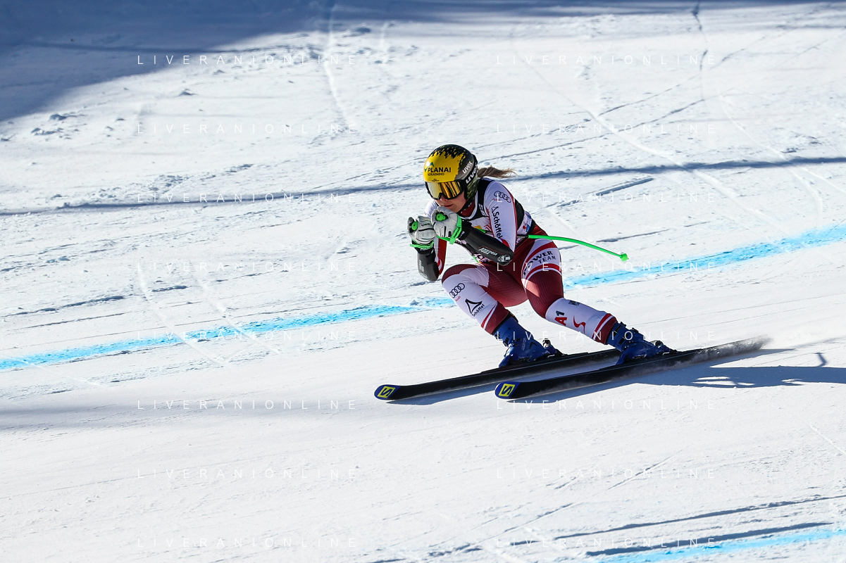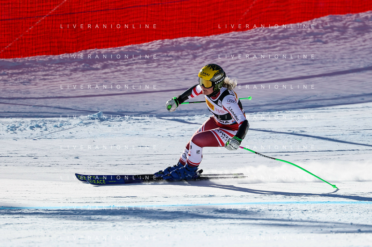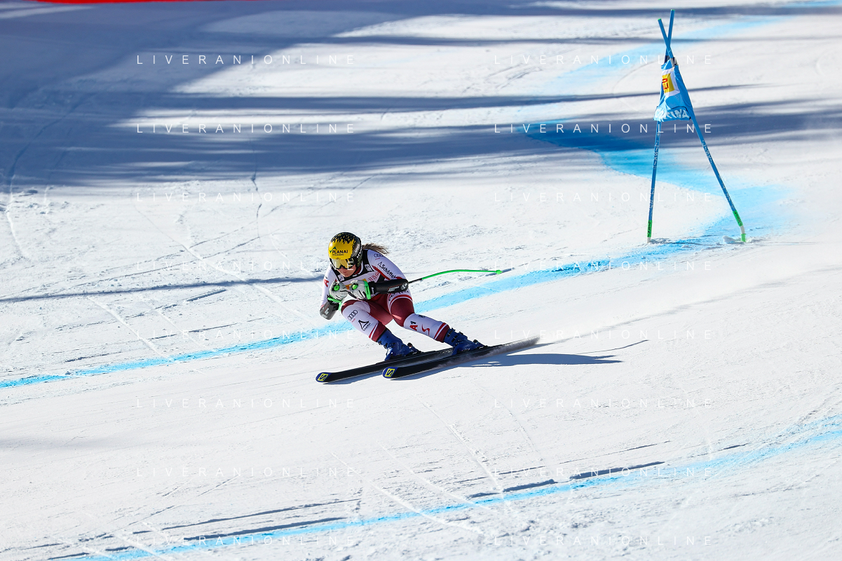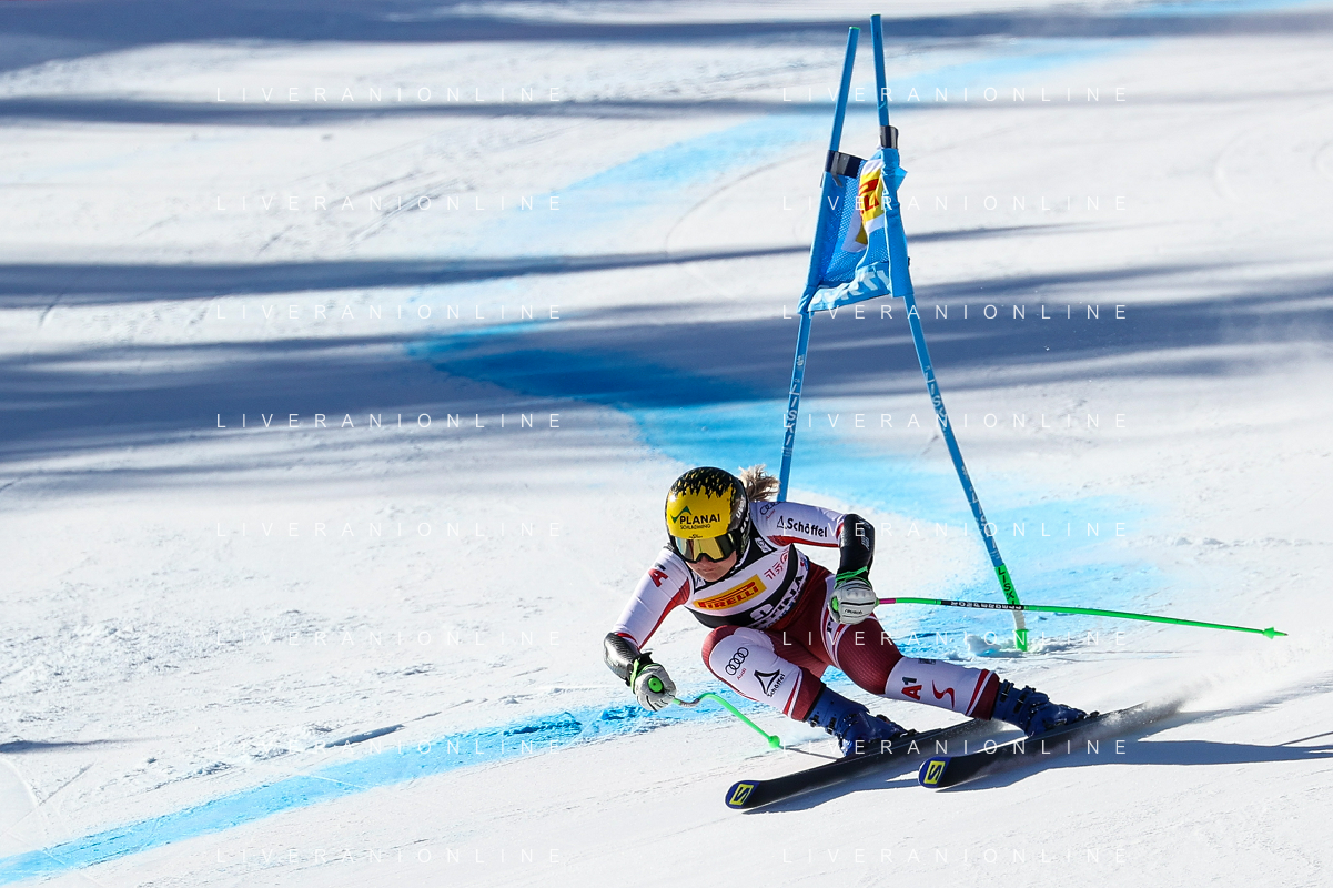 Luca Tedeschi/LMedia - 2022 FIS Ski World Cup - Women Super Giant - alpine ski race January 23 2022 - Olympia slope Cortina Ampezzo, Italy 2022 FIS Ski World Cup - Women Super Giant Photo showing: Mirjam Puchner (AUT) @Luca Tedeschi/LiveMedia AG ALDO LIVERANI SAS