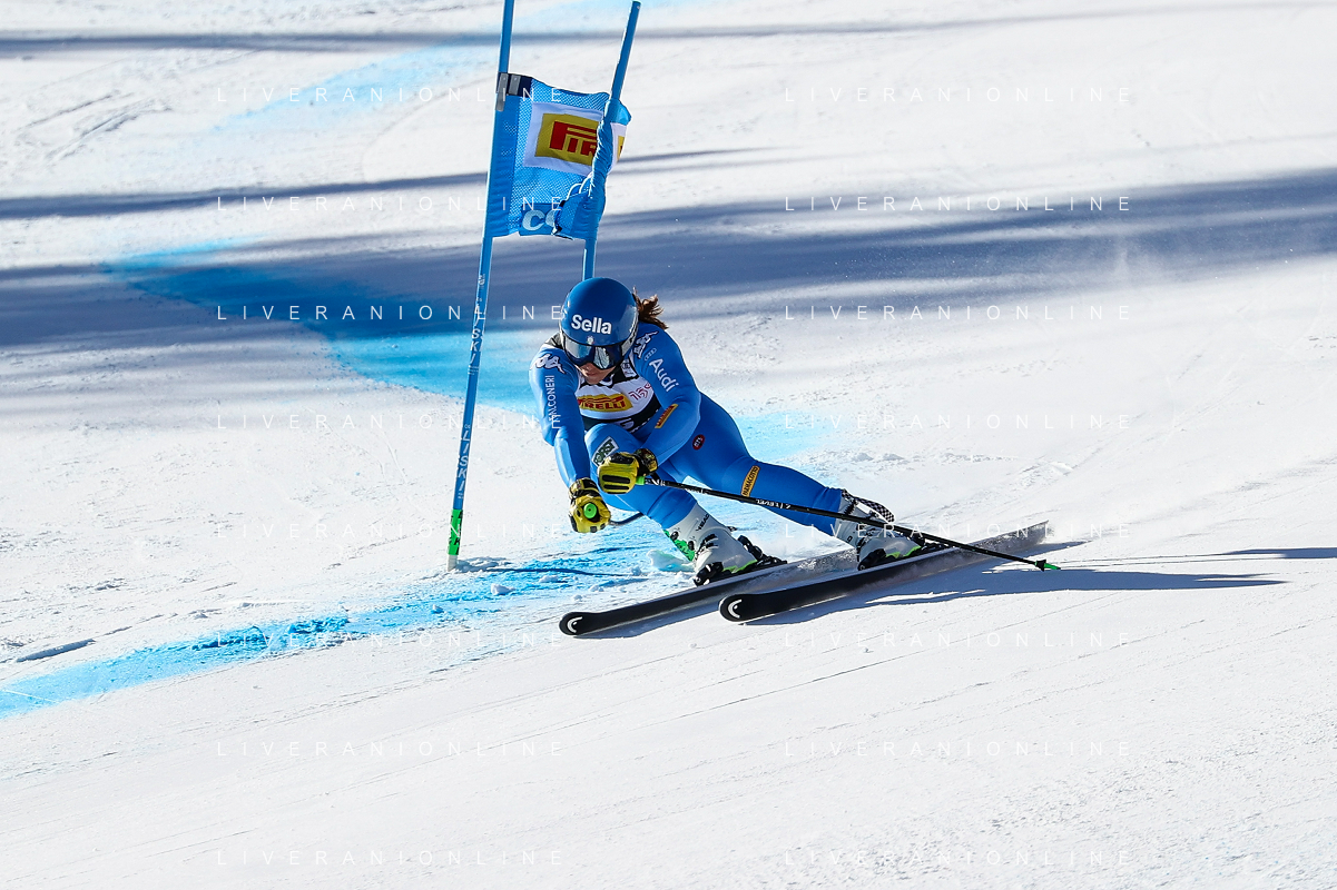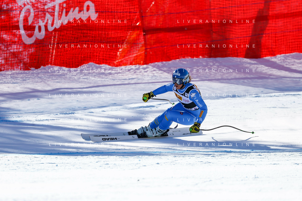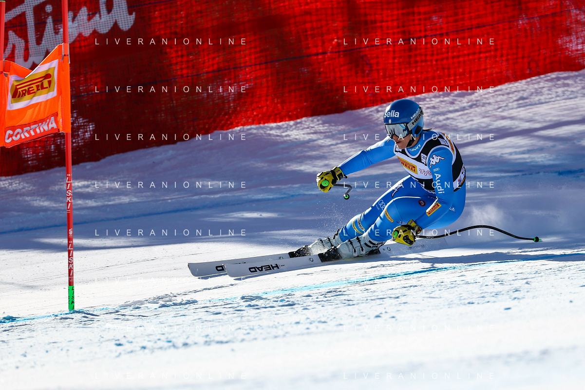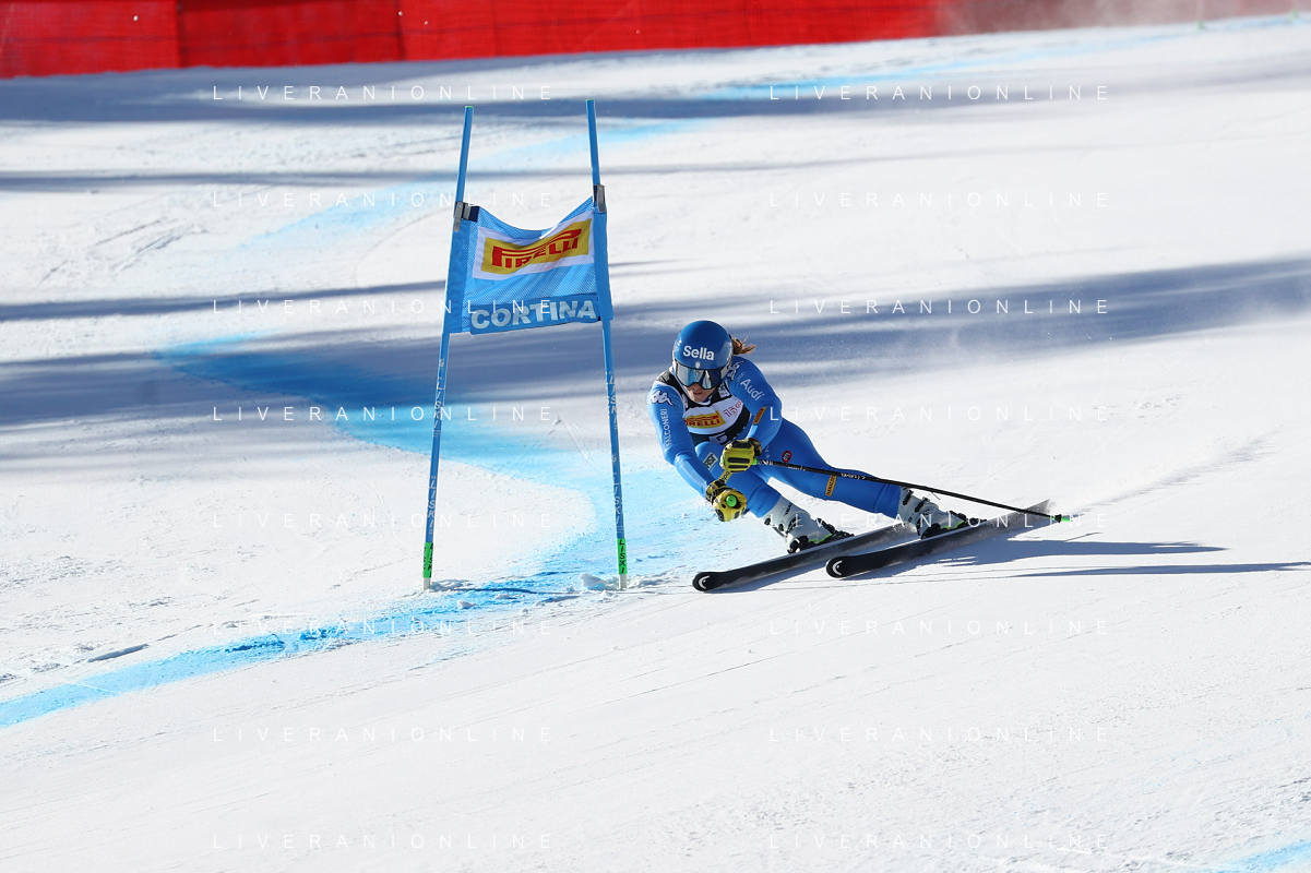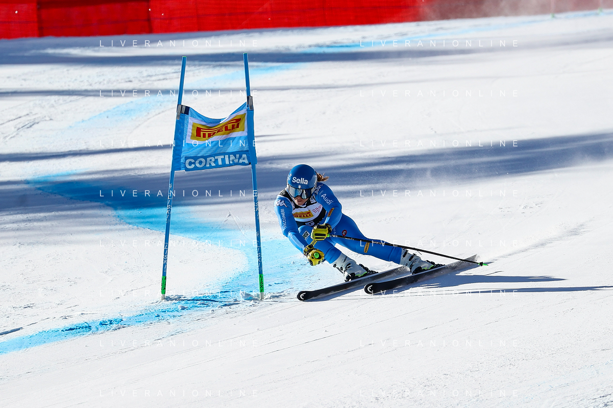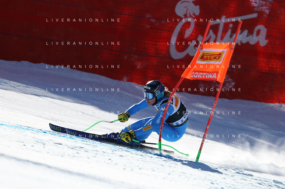 Luca Tedeschi/LMedia - 2022 FIS Ski World Cup - Women Super Giant - alpine ski race January 23 2022 - Olympia slope Cortina Ampezzo, Italy 2022 FIS Ski World Cup - Women Super Giant Photo showing: Elena Curtoni (ITA) @Luca Tedeschi/LiveMedia AG ALDO LIVERANI SAS
