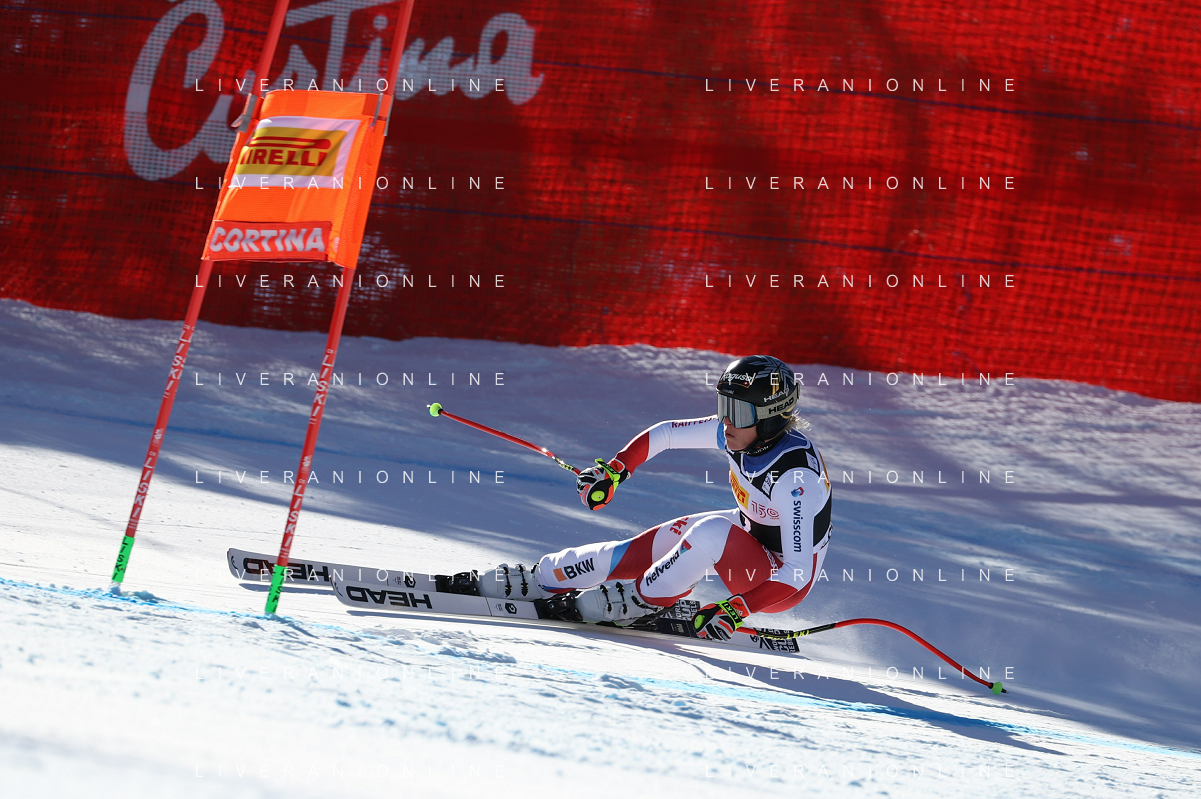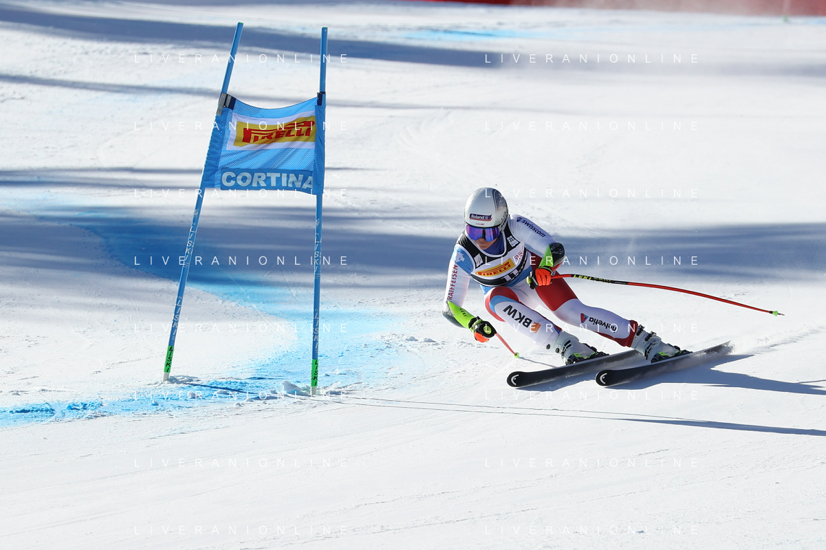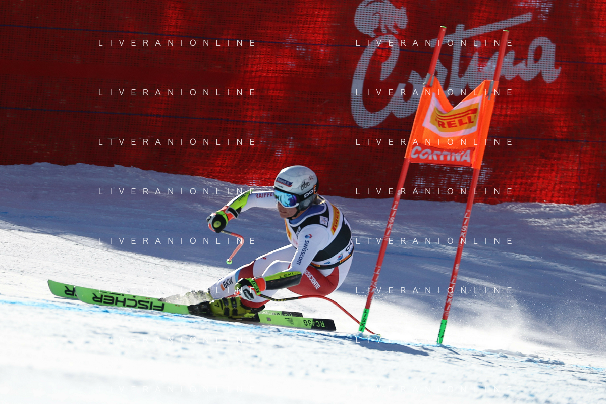 Luca Tedeschi/LMedia - 2022 FIS Ski World Cup - Women Super Giant - alpine ski race January 23 2022 - Olympia slope Cortina Ampezzo, Italy 2022 FIS Ski World Cup - Women Super Giant Photo showing: Corinne Suter (SUI) @Luca Tedeschi/LiveMedia AG ALDO LIVERANI SAS