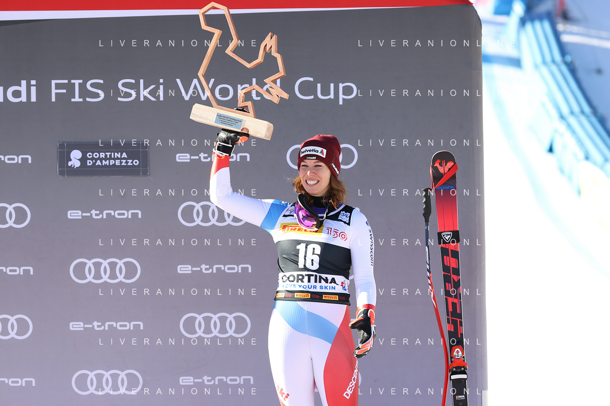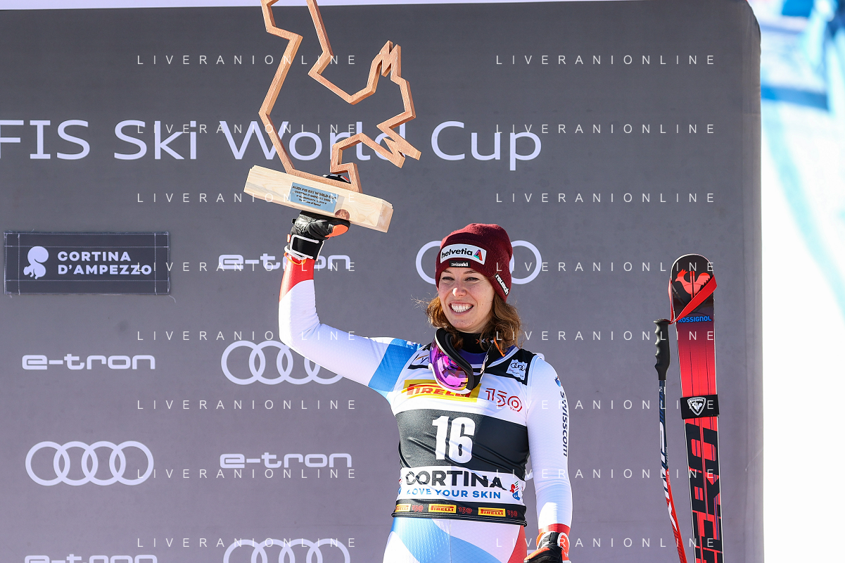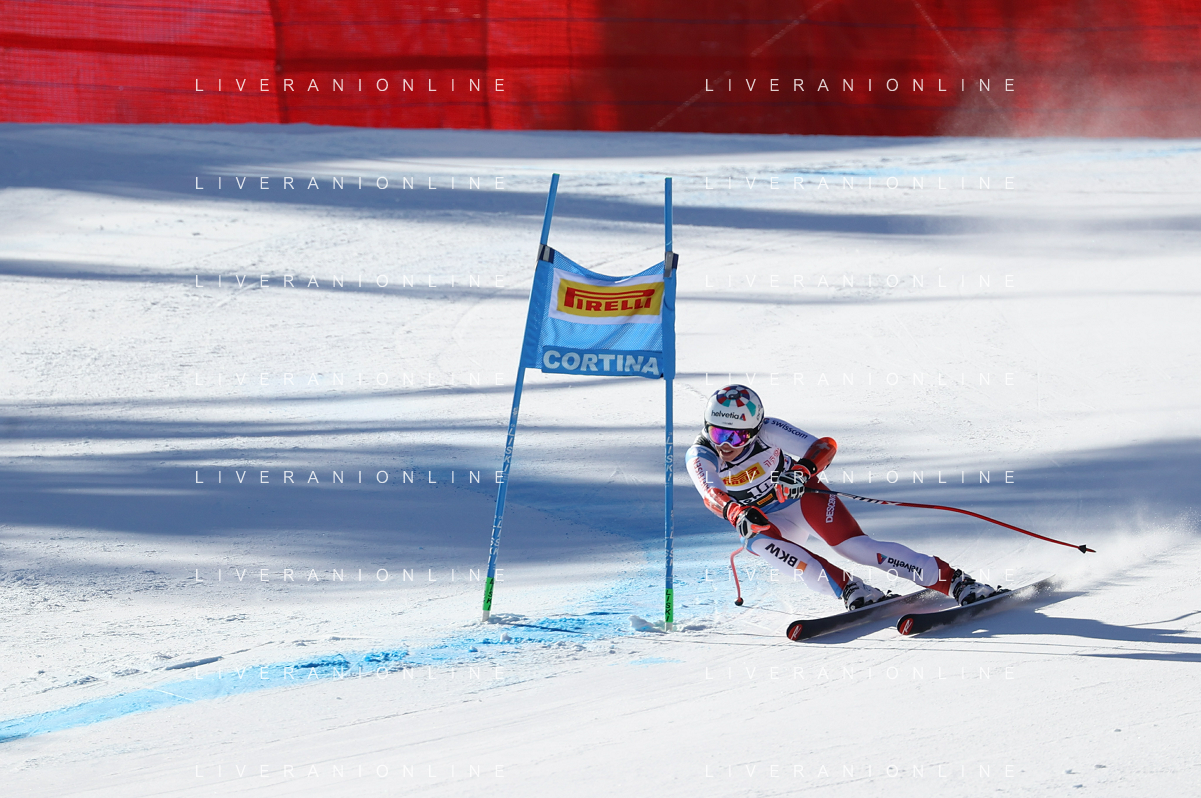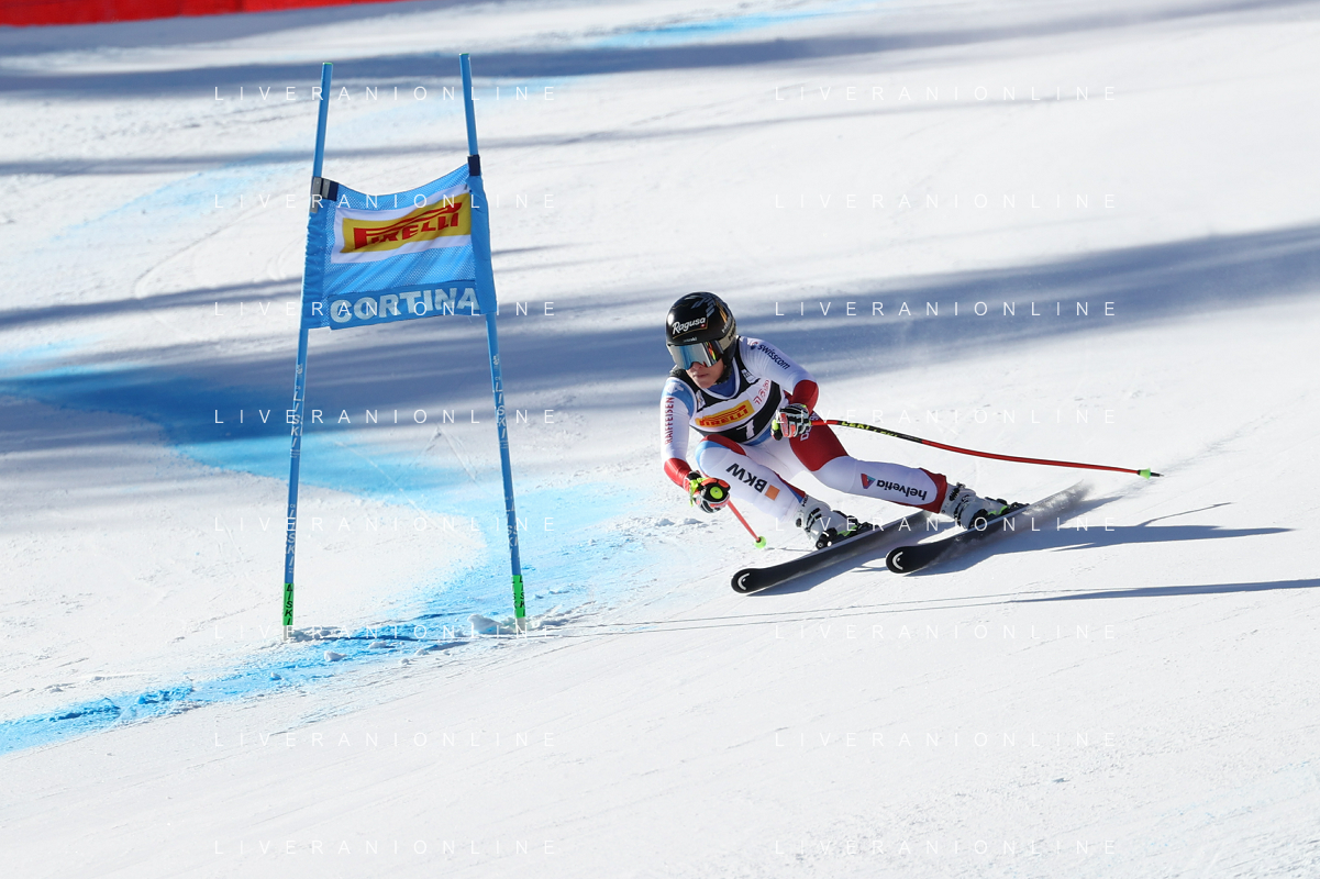 Luca Tedeschi/LMedia - 2022 FIS Ski World Cup - Women Super Giant - alpine ski race January 23 2022 - Olympia slope Cortina Ampezzo, Italy 2022 FIS Ski World Cup - Women Super Giant Photo showing: Corinne Suter (SUI) @Luca Tedeschi/LiveMedia AG ALDO LIVERANI SAS
